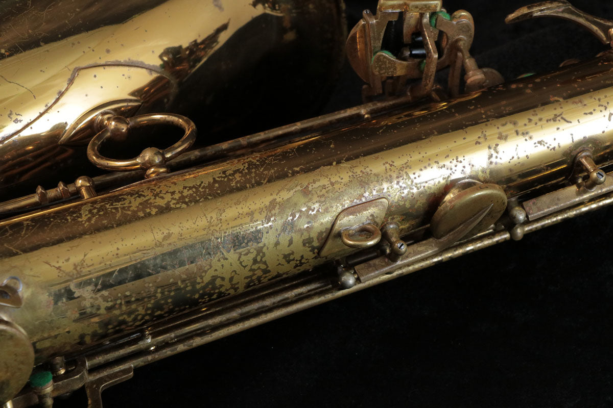 キィガードハンダ修正痕やネック、管体、U字管など修正痕が見受けられますがラッカーは比較的残っていると思います。こちらは全体調整済みです。