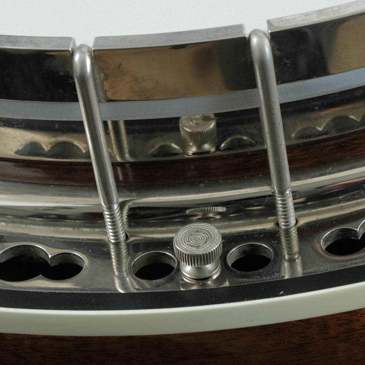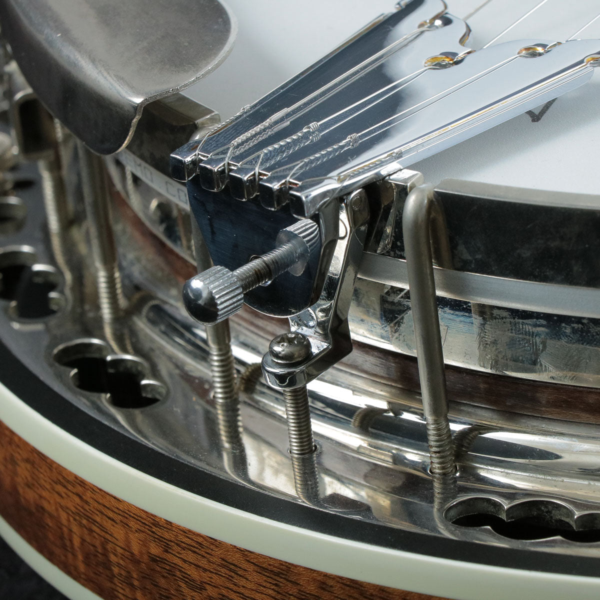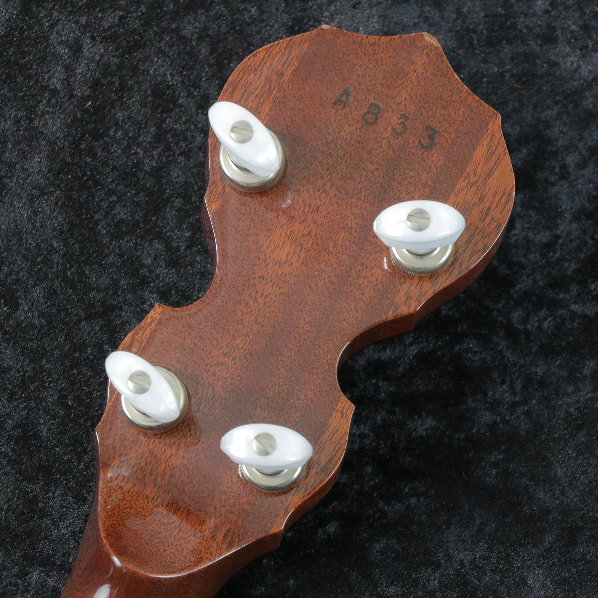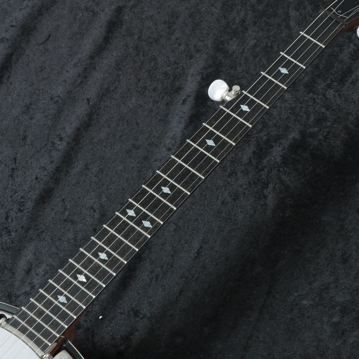 バンジョーに明るさと暖かさのバランスが良く、密度のある滑らかな音色が特徴です。明るい生き生きとした音は、他のバンジョーとは一線を画しています。指板はエボニーです。