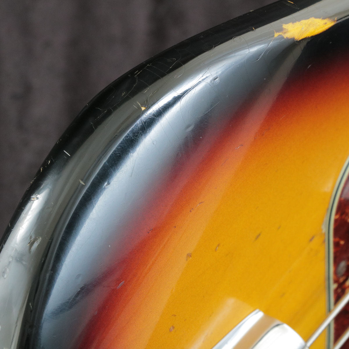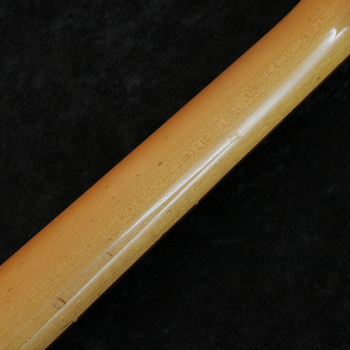 2pcアルダーボディにクウォーターソーンメイプルネック、ラウンド貼りのローズ指板という1960年代中盤における王道スペック。NOS(New Old Stock)モデルの個体ではありますが、塗装剥がれやパーツのサビ具合など、Relicと言っても差し支えのない適度に使い込まれた形跡があり、得も言われぬ貫禄を誇っています。