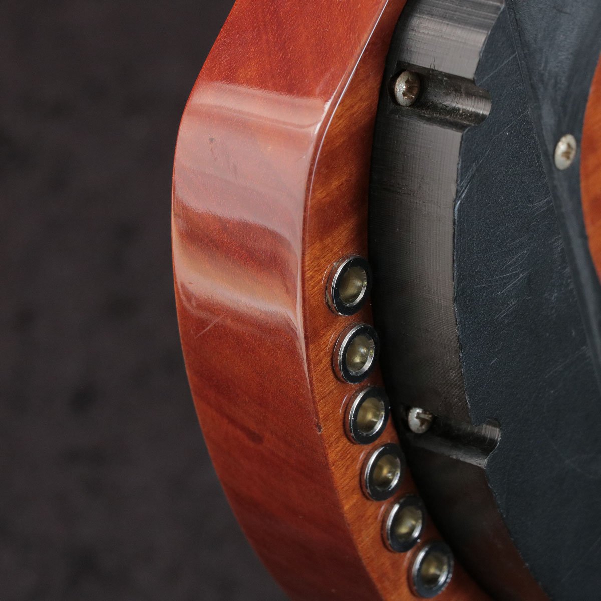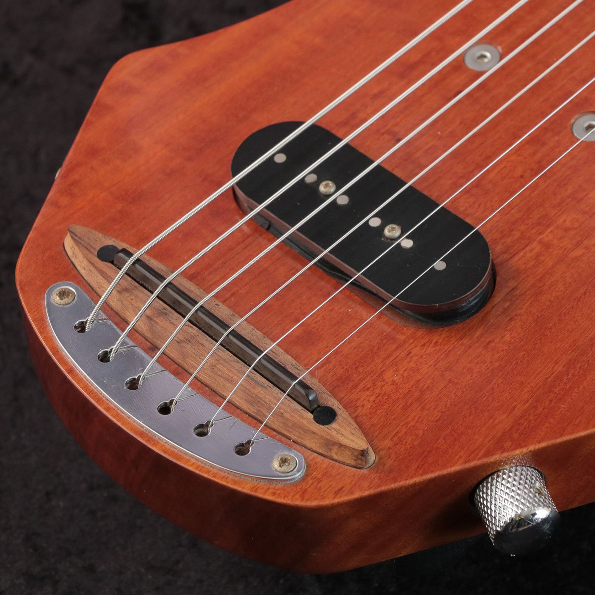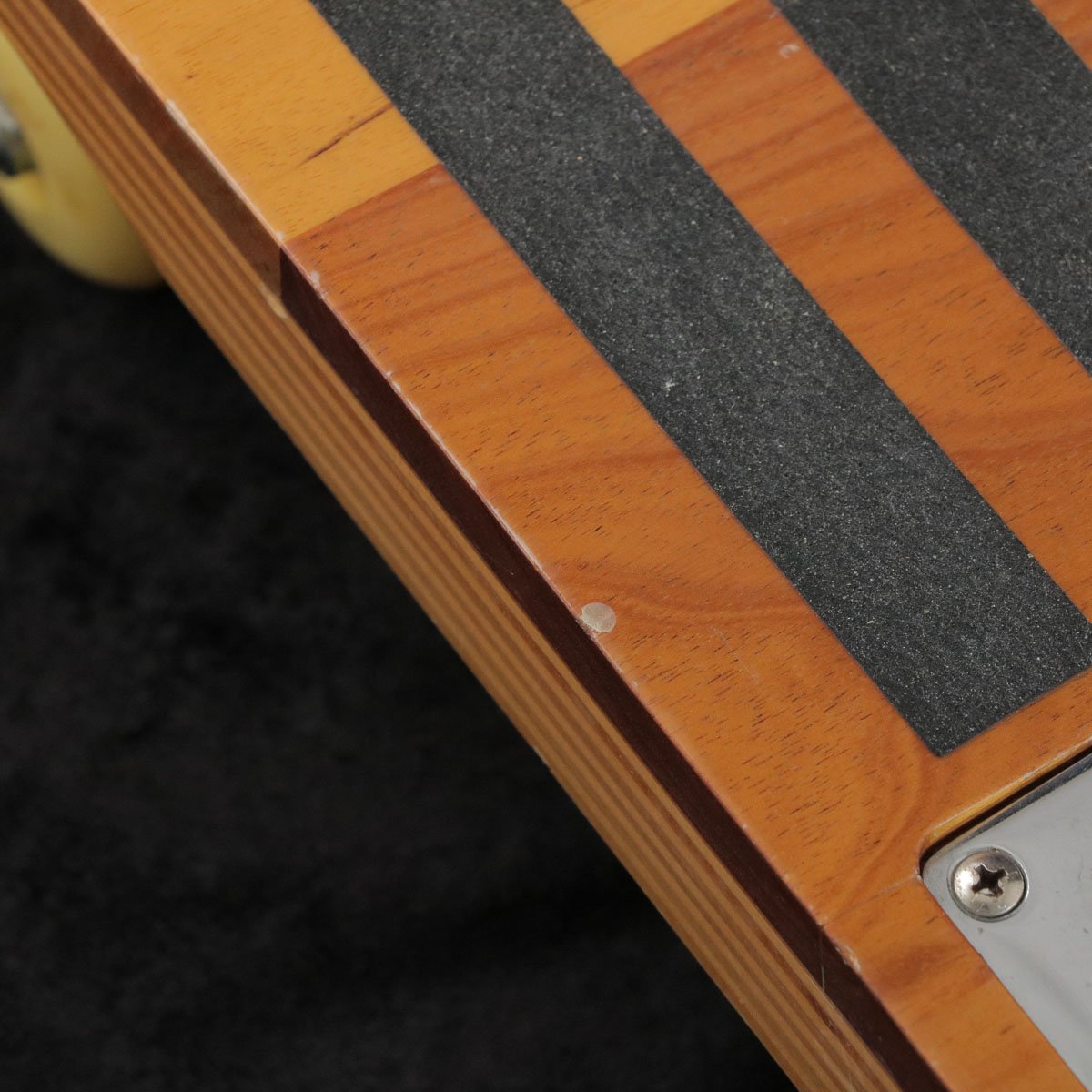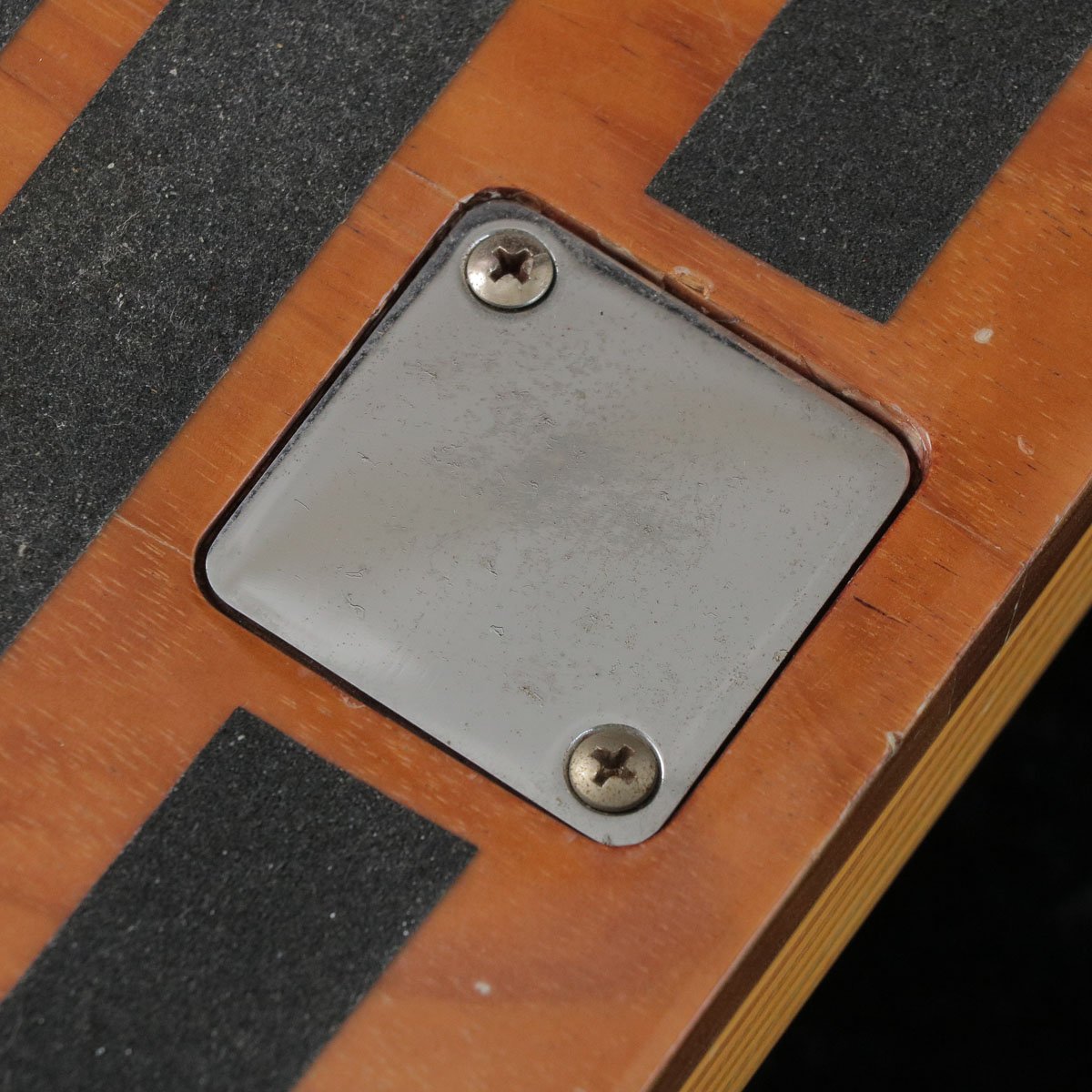 The deck is a cover that can be removed and converted into a lap steel. The wheel is attached to the steel guitar body, so it remains chunky even after the deck is removed, but it has a core sound and plenty of sustain. Ben Harper is said to have appeared on stage on this guitar and started playing at the drop of a hat. The scale is 25 inches. The only control is the volume.