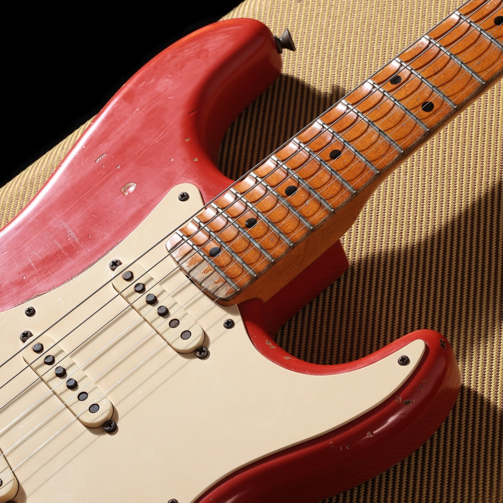 1957ストラトキャスターをベースに、アルダーボディ・メイプルネックを採用した1本。