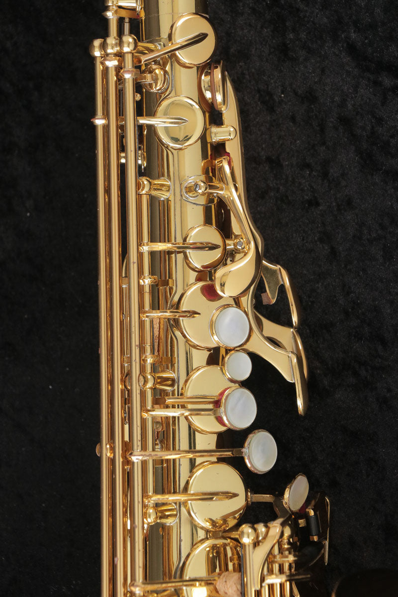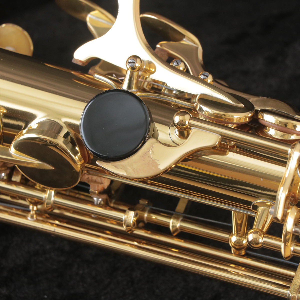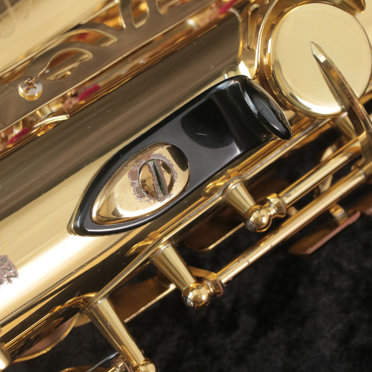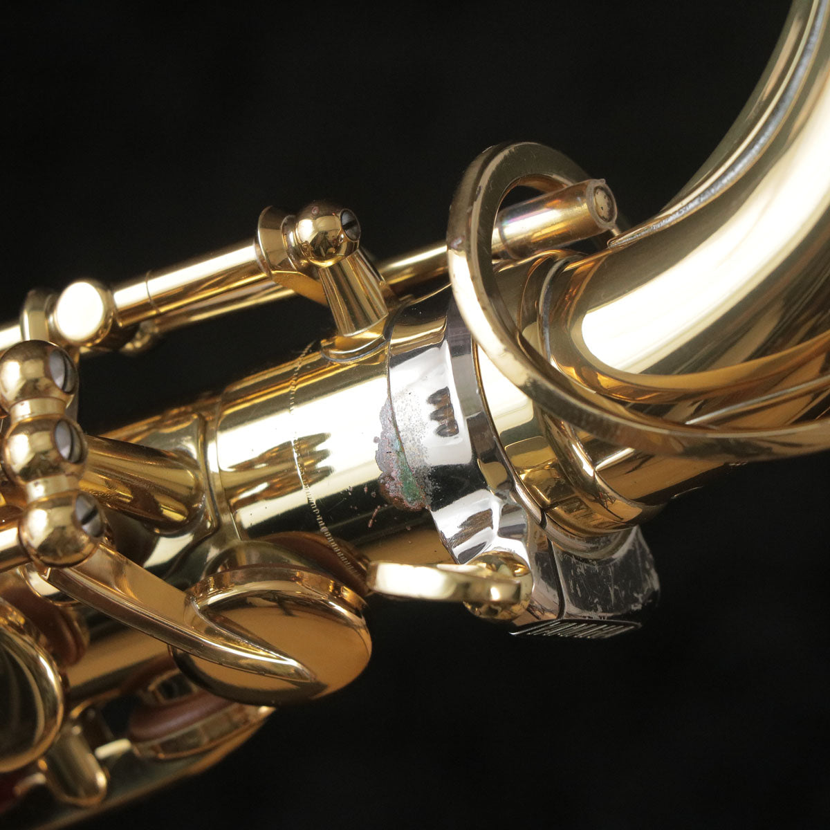 こちらはG1ネック時代の個体です。ジャズ、ポップスでも人気ですがジャンル問わず使用できるので吹奏楽でも使用できます。密度が感じられる音色で適度な反応の速さがあり演奏が楽しくなると思います。色んなジャンルを演奏される方にも扱いやすいモデルです。経年劣化や通常使用に伴う傷やラッカー剥がれ、変色、錆、修正跡などの使用感が全体的に見受けられる実用的なコンディションの楽器です。全てのタンポを新品交換し、きっちり調整を行っておりますのですぐに演奏をお楽しみいただけます。