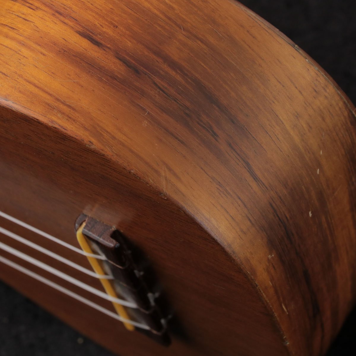The condition of the guitar has some dents, scratches, and dull metal parts, and there is a sense of age and use commensurate with the age of the instrument.