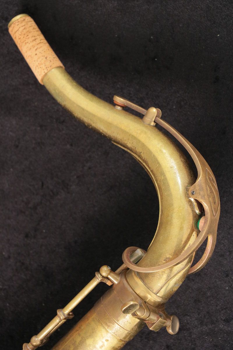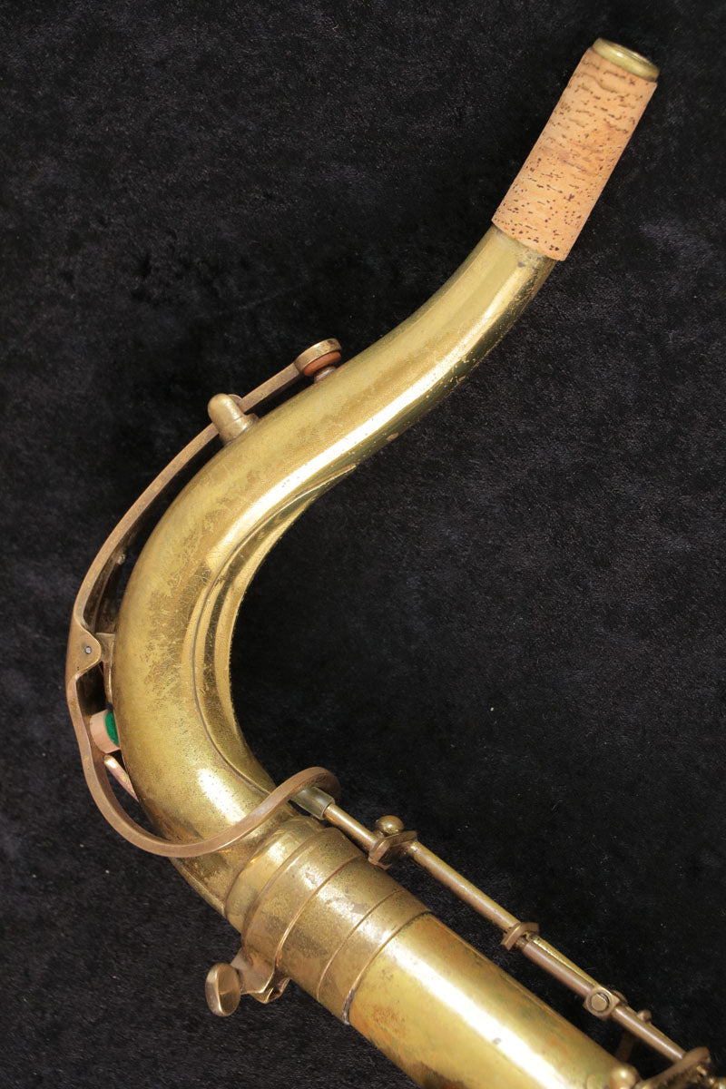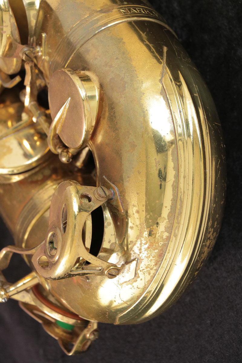 セルマーのテナーサックスMark6です。1974年頃製造の個体でM6としては最後期である意味成熟した年代かもしれません。後期らしい力強さと適度にオープンで華やかな音色は様々なジャンルで扱いやすく色んなマウスピースと組み合わせを楽しめそうです。U字管部や全体的に修理痕がございますがプレイヤーズコンディションとしは問題ございません。全タンポ交換調整済みですので即戦力になる1本です。