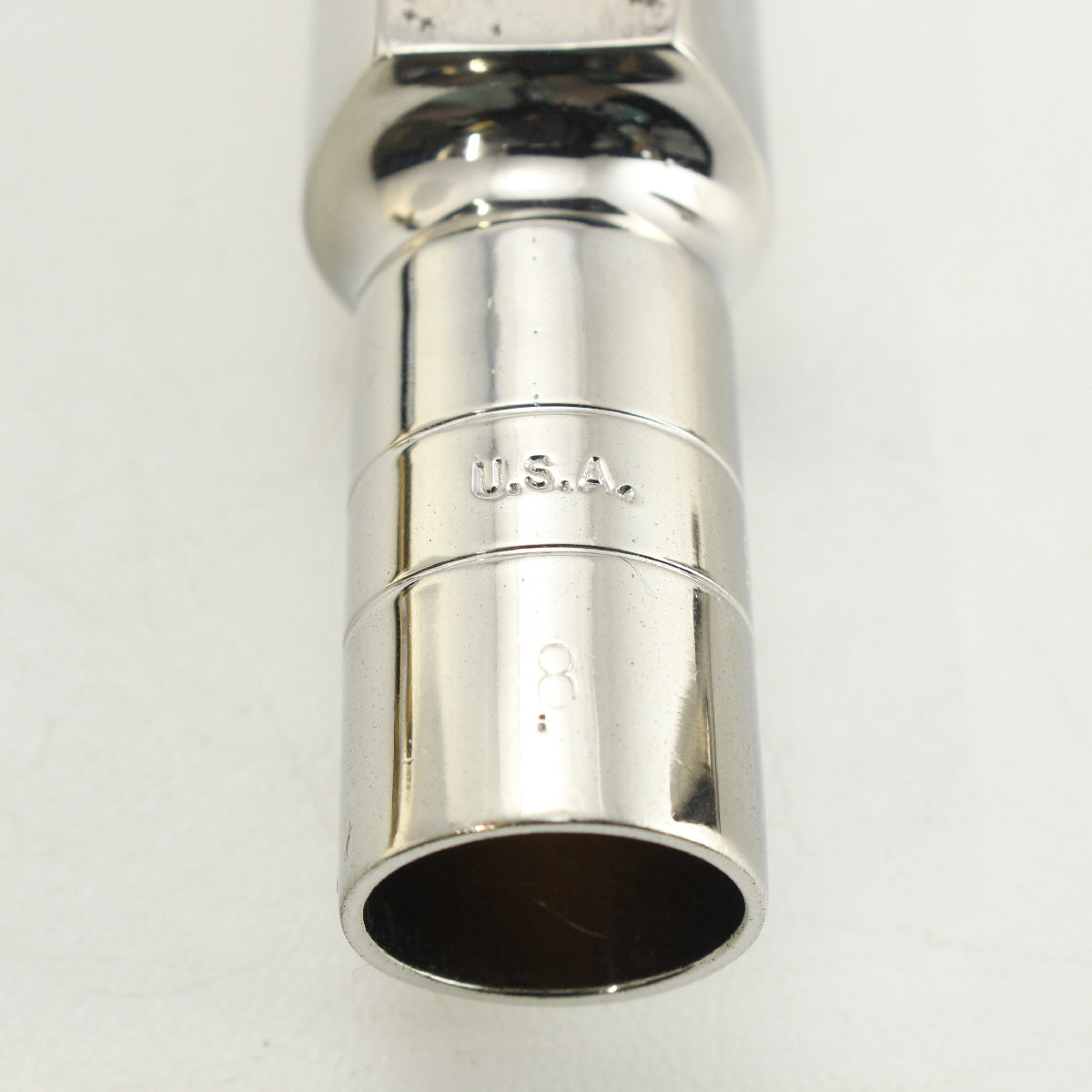 オットーリンクのバリトンサックス用マウスピースです。こちらは珍しいニッケル仕上げになります。通常ラインアップであったか不明ですが、前所有者様は新品で購入されたようです。バリトンでも人気があり定番マウスピースです。ダークで存在感があり、適度な倍音が広がりを感じます。テーブル面のメッキ劣化がございますが全体的にコンディションは保たれていると思います。