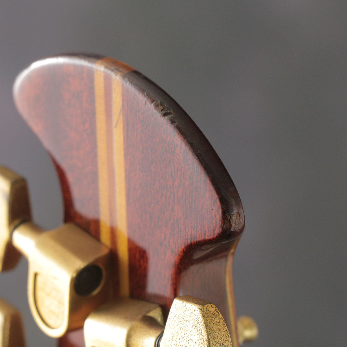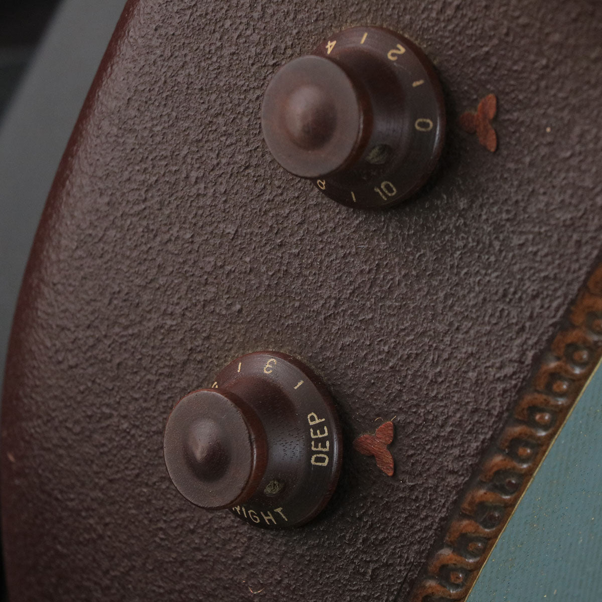 こちらは1982年製の1681。ノン・カッタウェイのディープ・ボウルをフィーチャーしたモデルで、人気の高いリバース・ブルー・バースト仕様。ウッド・ノブのコントロールがこの当時の製品の特徴です。