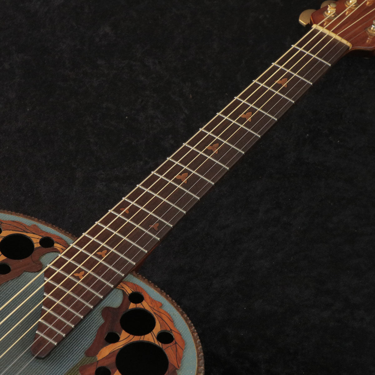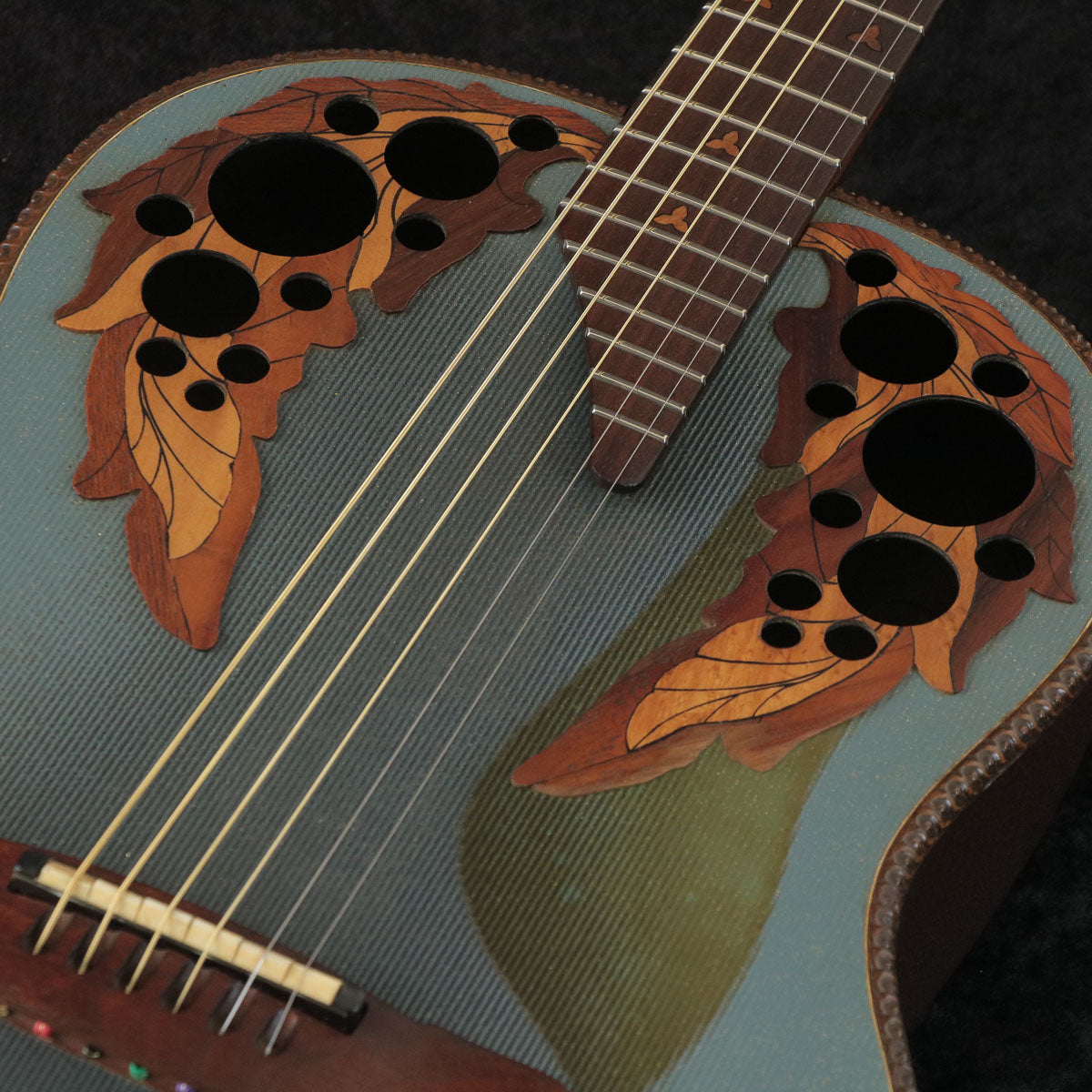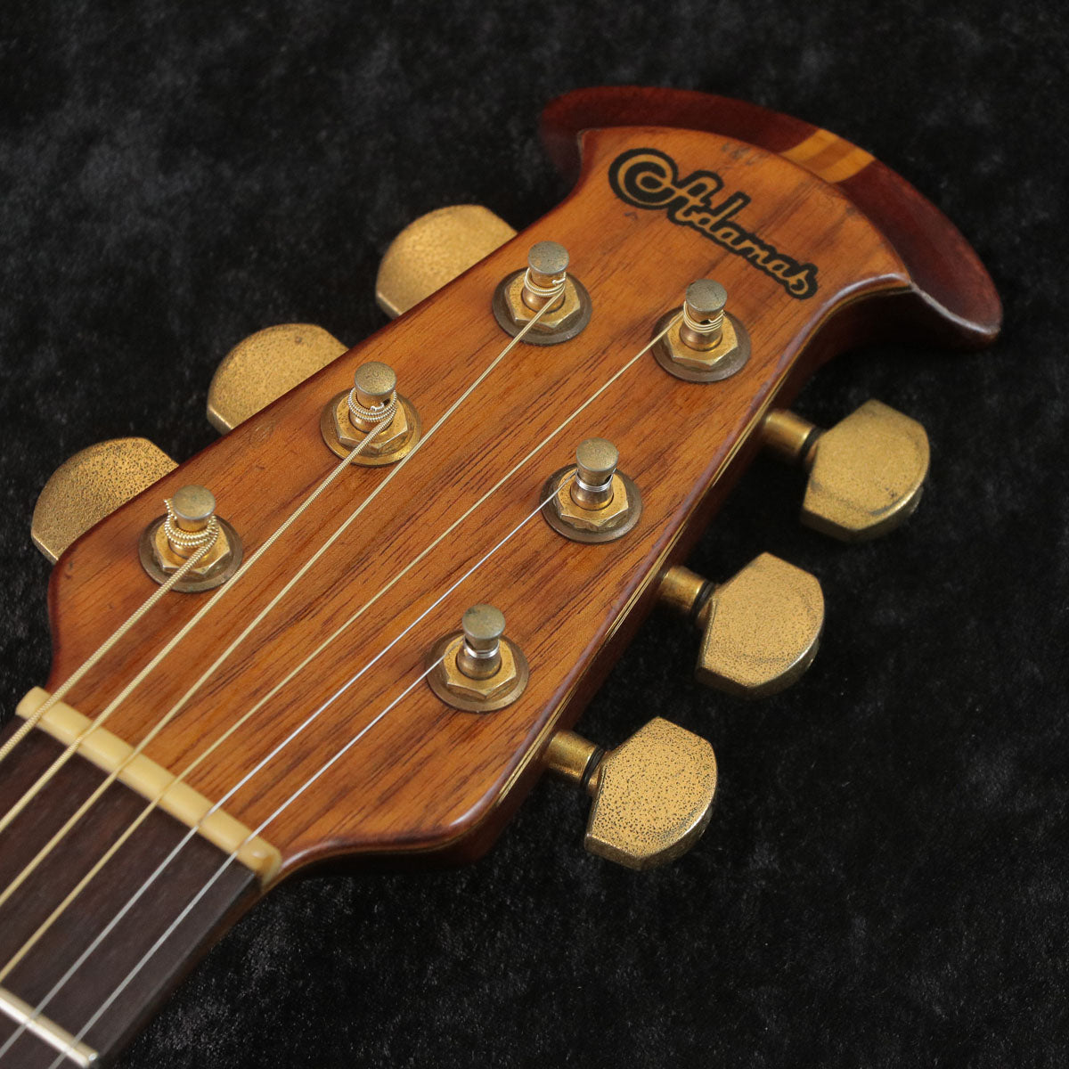 Adamas II was introduced in 1981 as a lower-priced version of Super Adamas. The carbon fiber top and relacord bowl back are the same as Super Adamas, but the bridge and headstock are the same as Ovation's. The price is reasonable. The bridge and headstock are the same as Ovation's, and the price is reasonable.