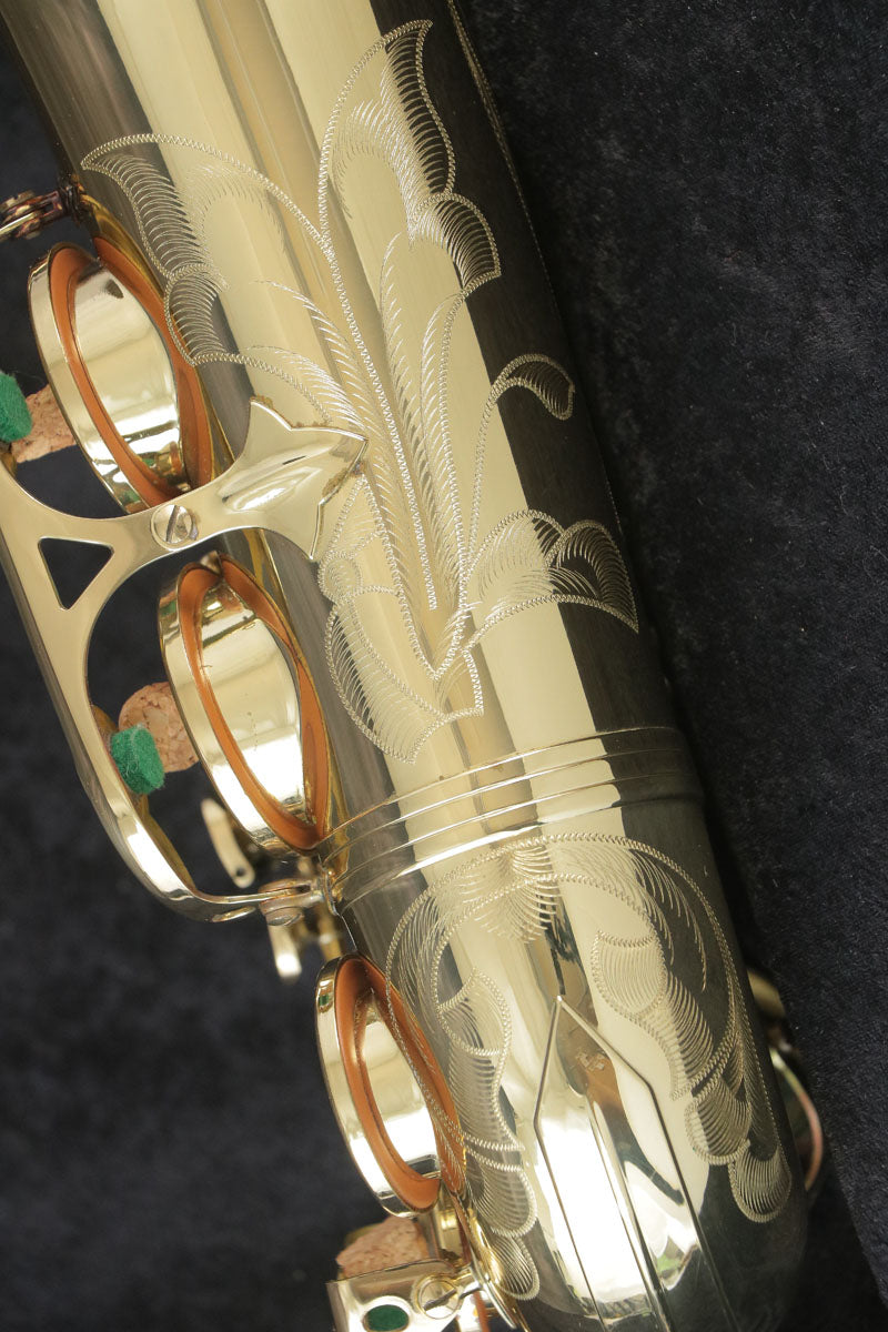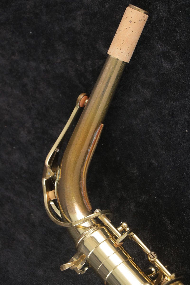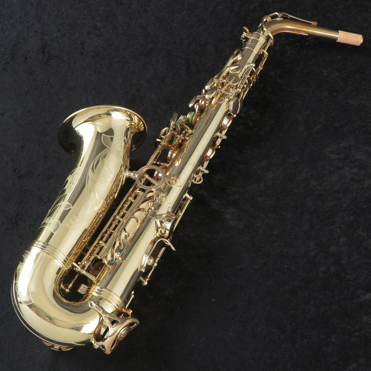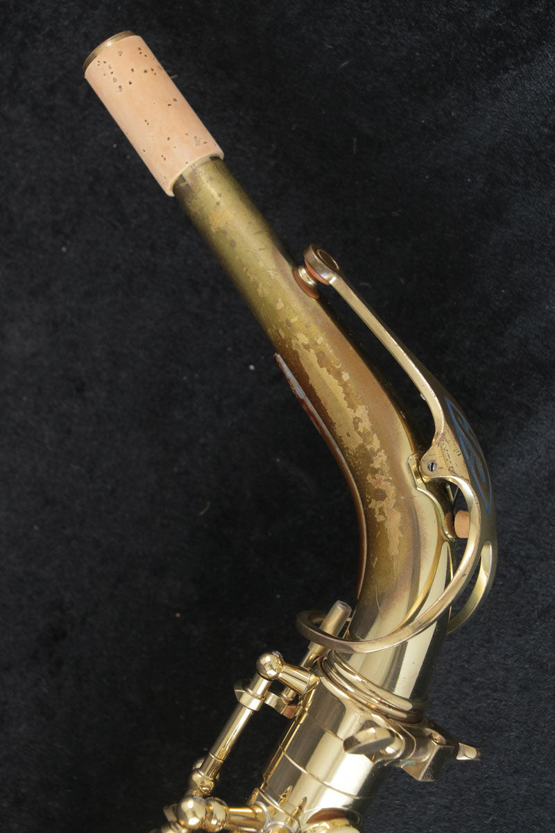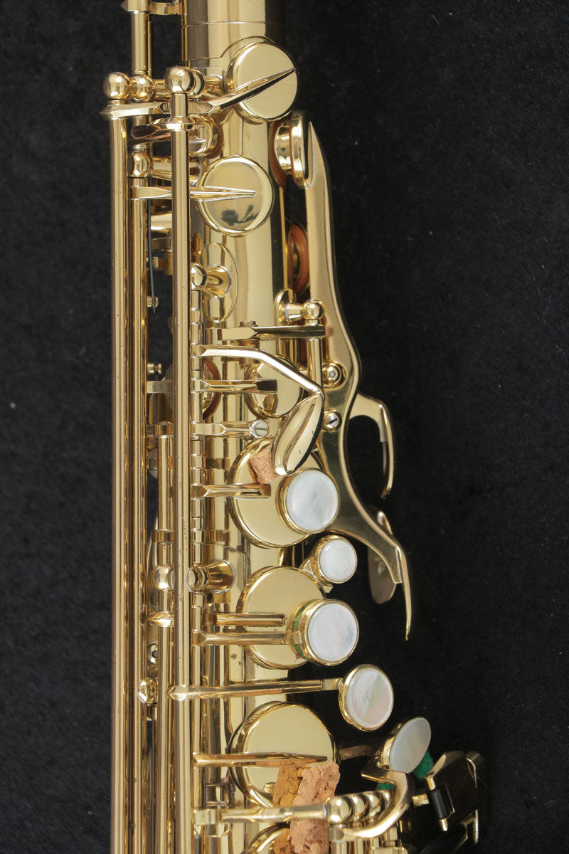 セルマーアルトサックスSERIE3です。2005年頃製造の個体。SA80と異なるキャラクターで高い音程精度、操作性が特徴的でSA80よりも柔らかな音色だと思います。こちらもジャンル問わず人気があり、早いパッセージも得意な印象です。ネックに焼けやラッカー剥げ、キィやキィポスト下やハンダ箇所などに所々のサビ、使用に伴う擦りキズは等の使用感はありますが、目立つ凹みや腐食はなく、使用上は特に問題はございません。全てのタンポを新品交換し、きっちり調整を行っておりますので直ぐに演奏をお楽しみいただけます。