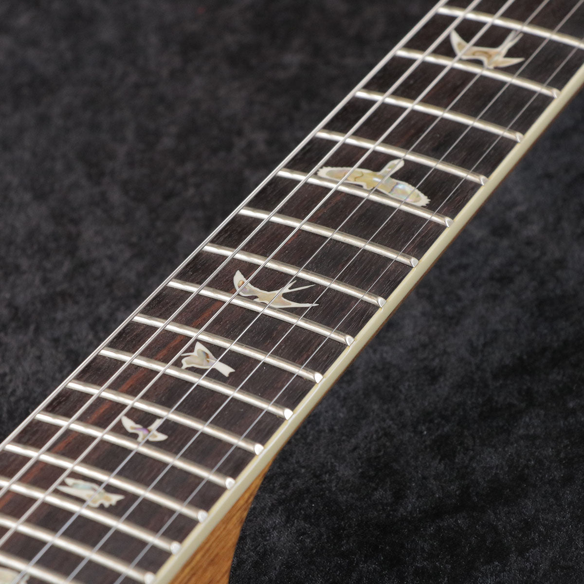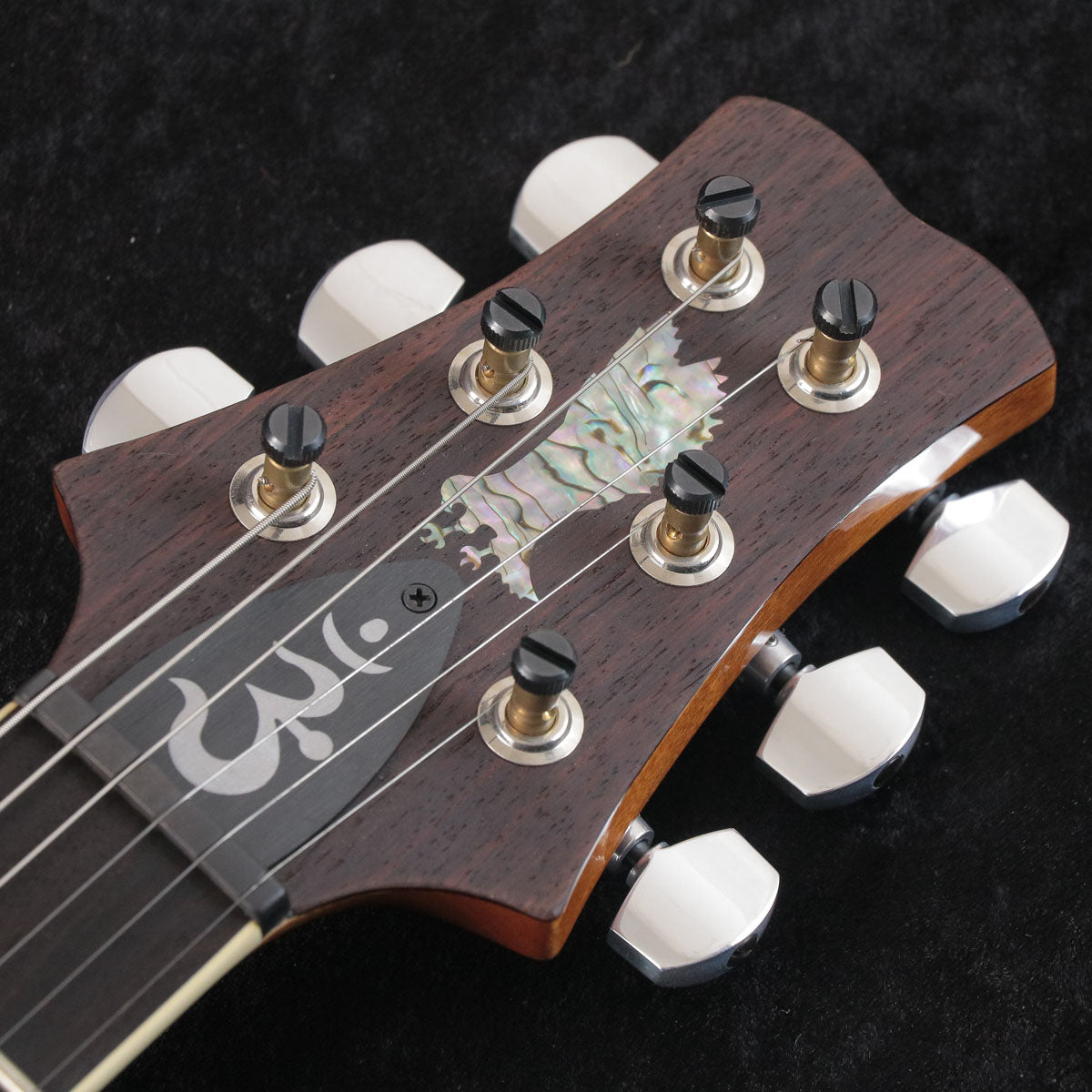 長きに渡るCarlos SantanaとPaul Reed Smithの2人のパートナーシップは、PRS Guitarsの運命に大きく寄与してきました。この関係に敬意を示すべく、これまで彼のシグネチャーモデルとその派生モデルを数多くリリースすることで、この枢要なパートナーシップに与ってきました。Santana Retroは、1980年代前半にポールがサンタナのために製作した“プリファクトリー”期のギターへのオマージュとして製作され、ウエスト部分を深めに絞ったボディ・シェイプ、オリジナルモデルと同シェイプのヒールカット、ヘッドストックの形状、そしてナットのデザインなど、デザイン面において再び採用された特徴的なポイントが多々あります。