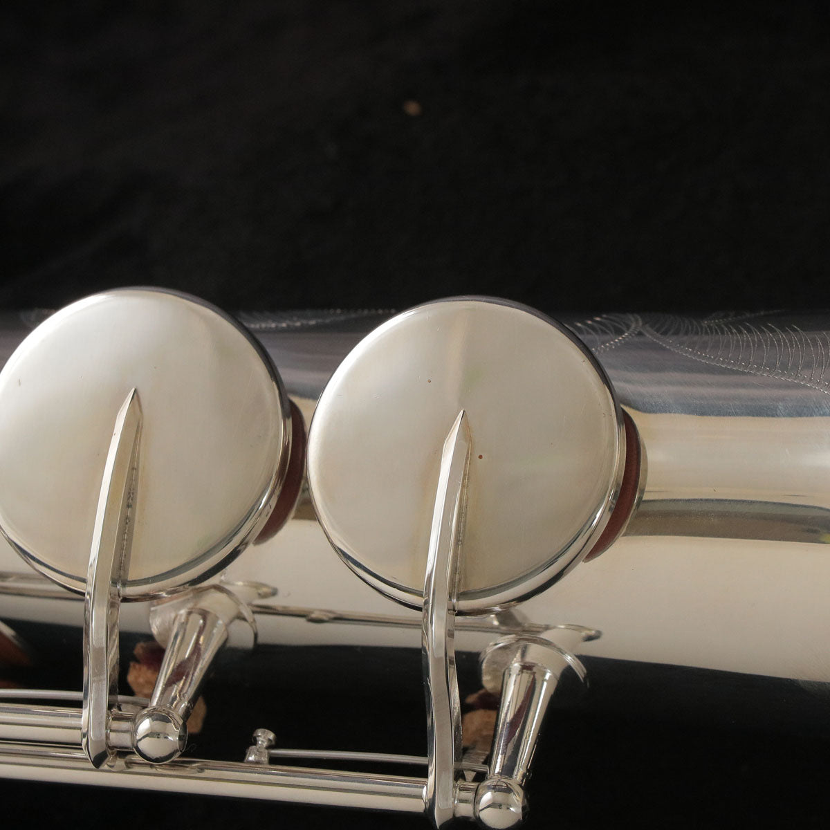 ジャパン・ヴィンテージの中でも高い人気を誇る名機で国内外問わず注目されている一つだと思います。こちらは前期タイプの仕様で、目立つダメージは無く、所々に傷やメッキのくすみがありますが全体的なコンディションはよく保たれていると思います。軽快な鳴りで密度のある音色は62Sならではです。傷みのみれられたタンポ12ヶ所を新品交換し、きっちり調整を行っておりますのですぐに演奏をお楽しみいただけます。