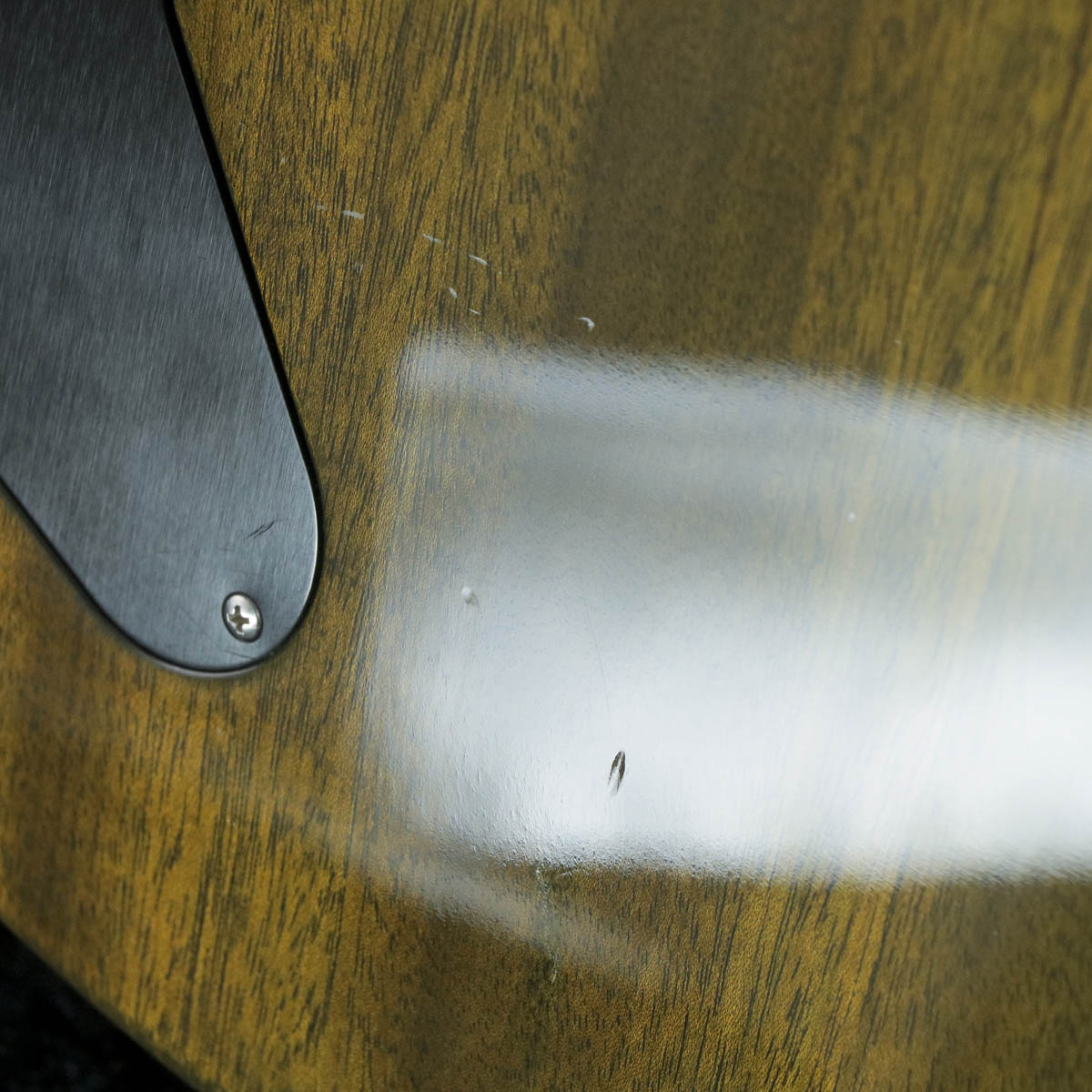 ボディバックとネックジョイント部付近に塗装の白濁が見受けられ、その他細かな傷や打痕が点在し使用感のあるコンディションとなっております。