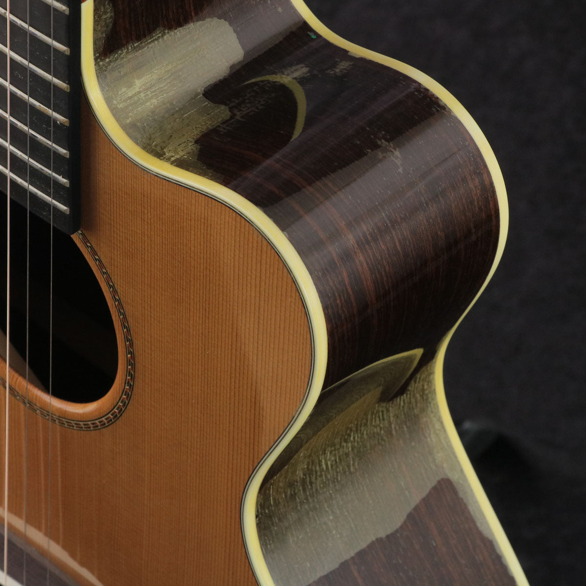ボディ材は、シダートップ、ローズウッドサイド&バックのオールソリッド仕様