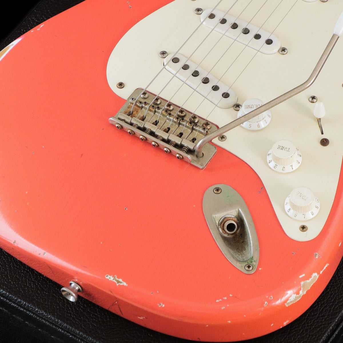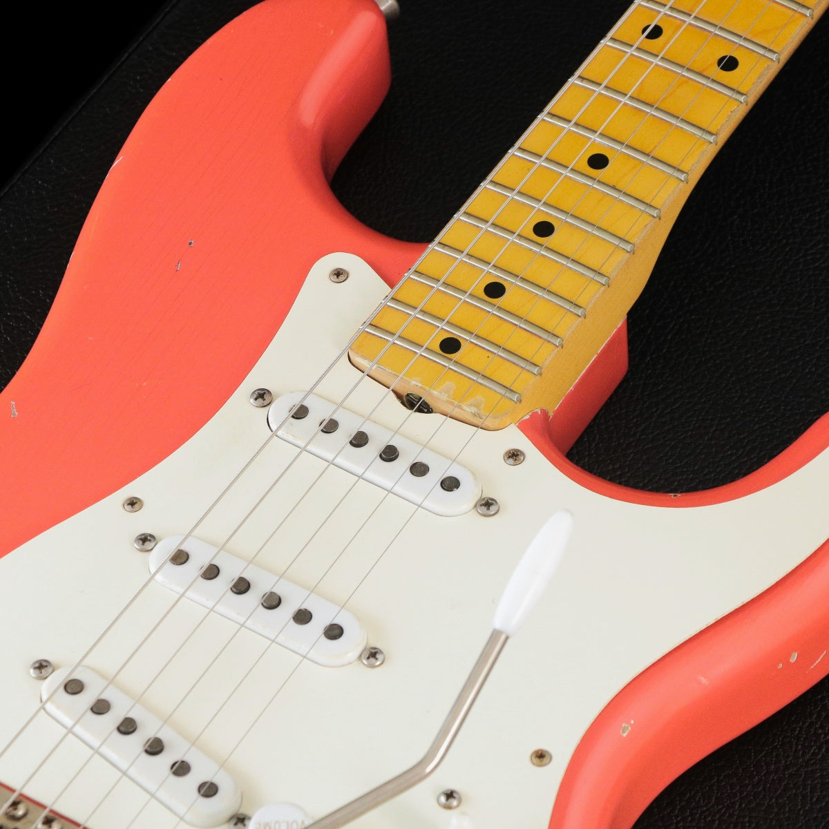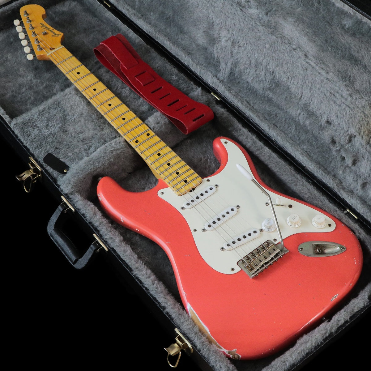 This is a cool Strat-type "Sierra" made in 2020 in the "Fiesta Red" color, which reproduces the peeling paint and weather checks caused by the aging process!