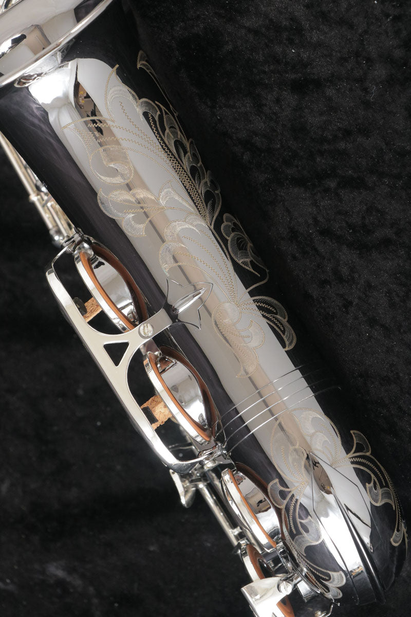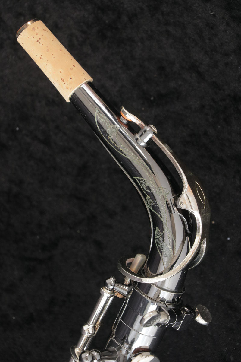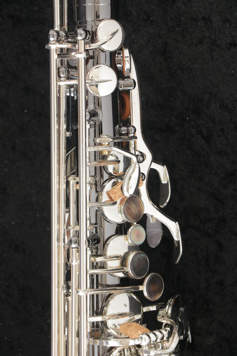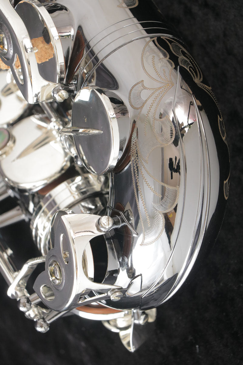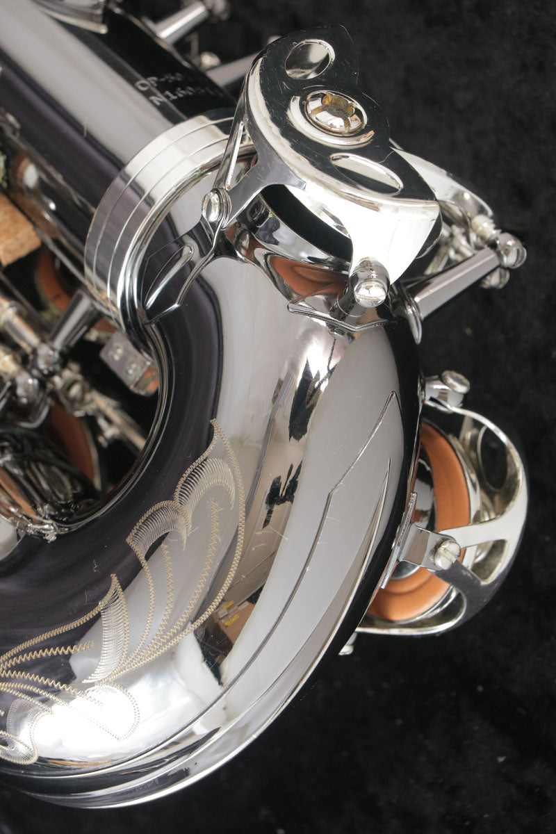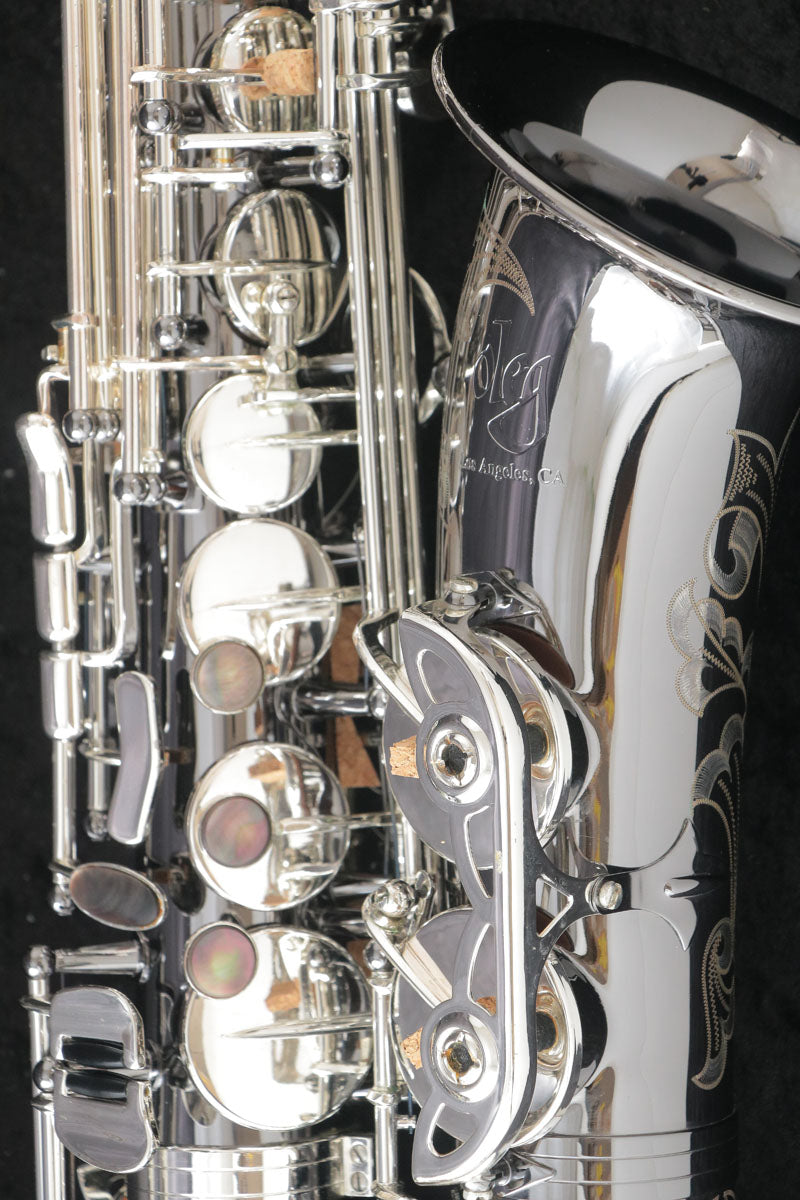 オレッグのアルトサックスです、こちらはブラックニッケルプレートで重厚かつエッジのあるサウンドが特徴です。プロフェッショナル向けに製造された個体でオレッグ氏が組み上げていたようです。現在は廃盤となってしまいましたがオレッグ氏の技術力がしっかりと入ったサックスだと思います。使用に伴う小キズ等ございますが、大きなダメージもなくコンディション良好です。不良タンポ交換調整済みですので直ぐに演奏をお楽しみ頂けます。