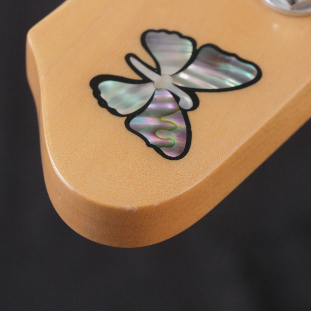 ボルトオンによるネックジョイントやアングルがついていないヘッド、60s風のルックスとオールドライクなこちらのモデルは同ブランドによるF社のオマージュモデルです。