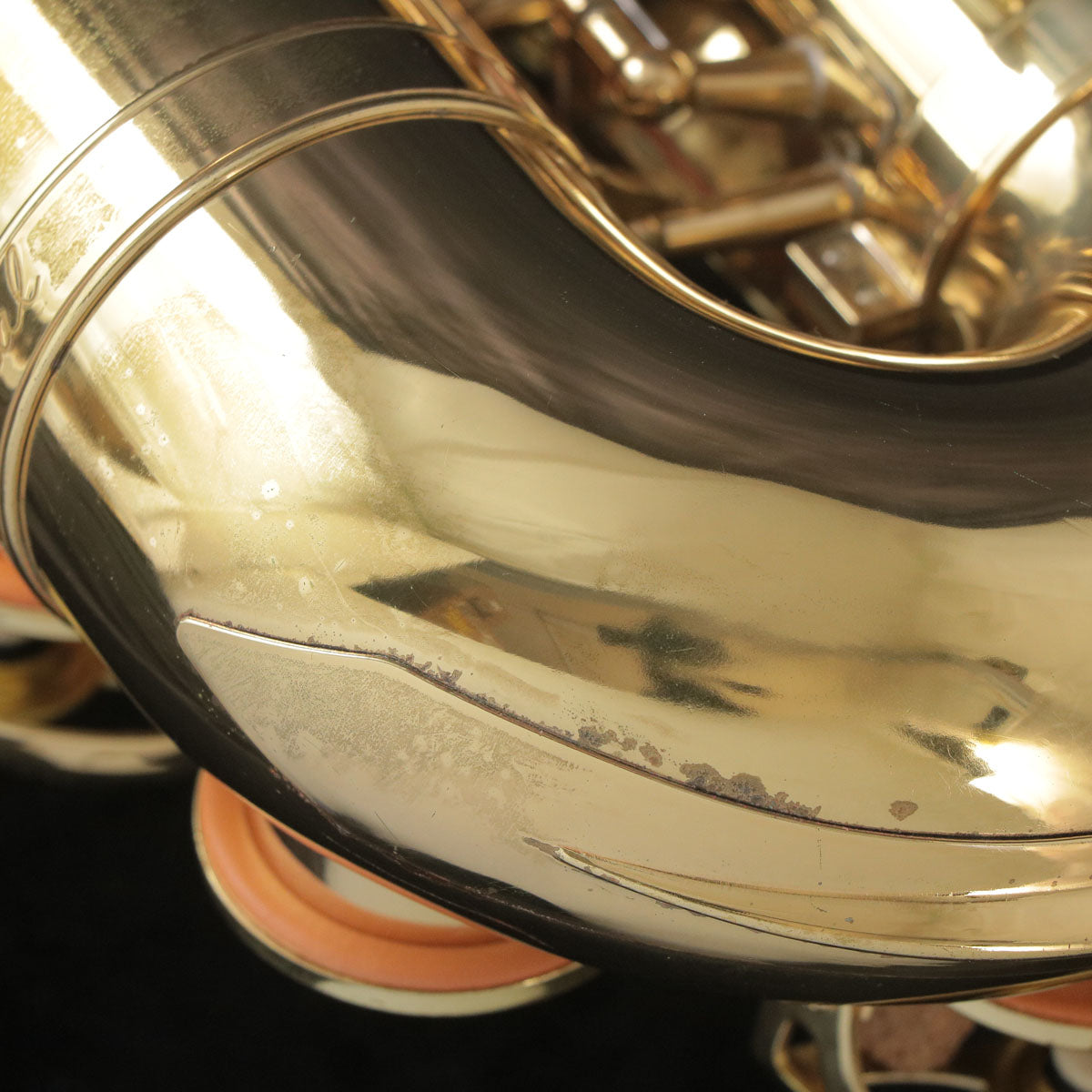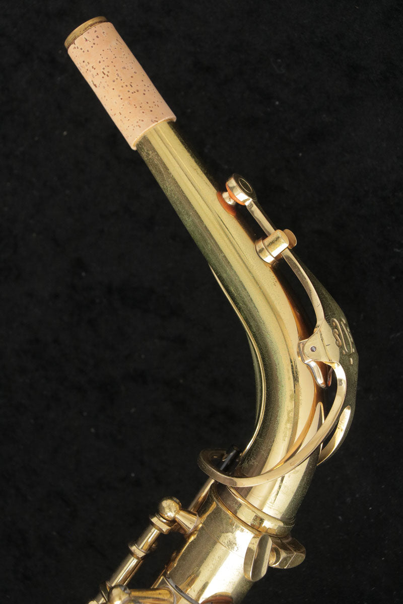 [A-901」を基に、一部パーツの軽量化や管体彫刻などをなくし、高い品質を維持しながらコストパフォーマンス化を図ったモデルです。 ジャンル問わずオールラウンドに使用できるモデルで、軽快なサウンドが魅力的です。響きも素直でマウスピースのキャラクターも活かしやすいと思います。ネック・ベルフレア・ベルU字の凹み修正を行っており、モヤモヤとした修正跡や凹凸が残っています。その他、全体的に傷やラッカー剥がれ、サビなどの使用感がかなりある実用的なコンディションの楽器ですが、全てのタンポを新品交換し、きっちり調整を行っておりますので直ぐに演奏をお楽しみいただけます。