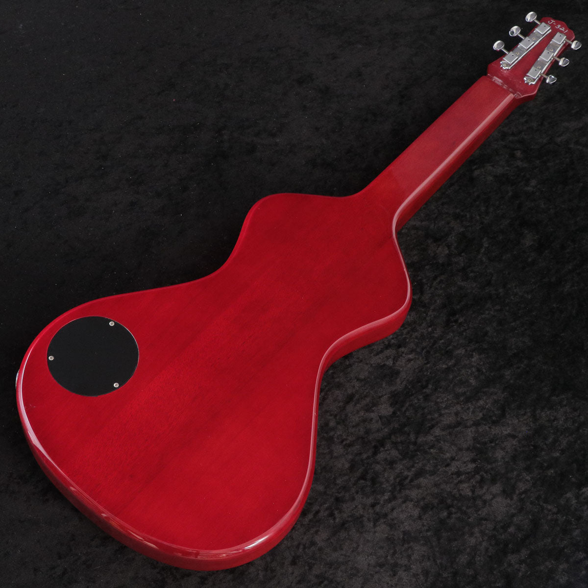 スルー・ネック構造で、ボディ、ネックにはソリッド・マホガニー、指板にはローズウッドが採用されています。ハムバッカーを2基搭載しており、野太くパワフルなサウンドが特徴。名称には「ハワイアン」が付きますが、オーバードライブさせたロック、ブルースの演奏にも向いた現代的なラップ・スティールです。ナット側の弦の感覚が広く、ハンマリング・オンやプリング・オフなどを駆使した演奏にもストレスを感じさせません。
