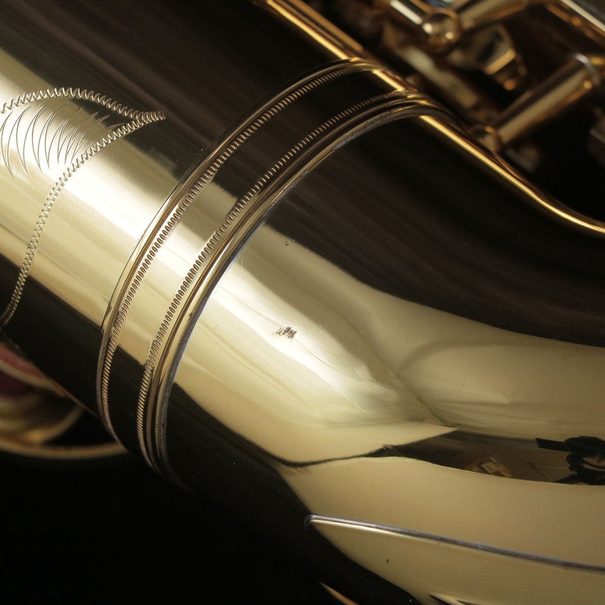 ベルフレアの凹み修正を行っており、モヤモヤとした修正跡が残っていますが形状は綺麗に修正されています。その他、通常使用に伴う傷やラッカー剥がれなどの使用感が所々に点在している実用的なコンディションの楽器です。全てのタンポを新品交換し、きっちり調整を行っておりますのですぐに演奏をお楽しみいただけます。