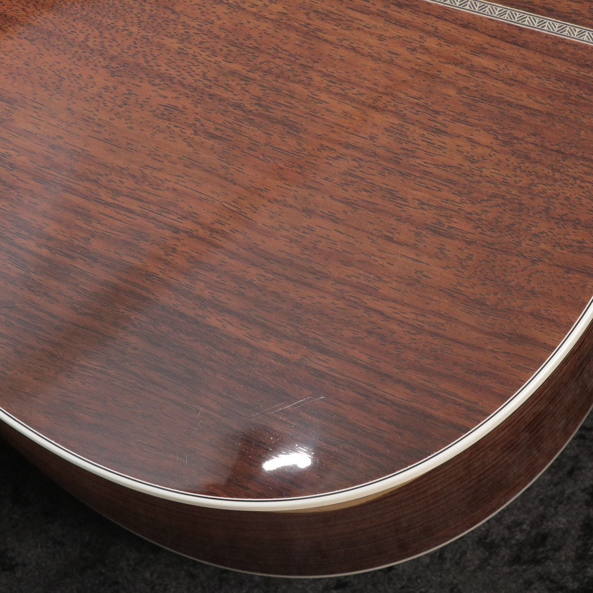 アフリカンマホガニーネック、リッチライト指板の組み合わせ。