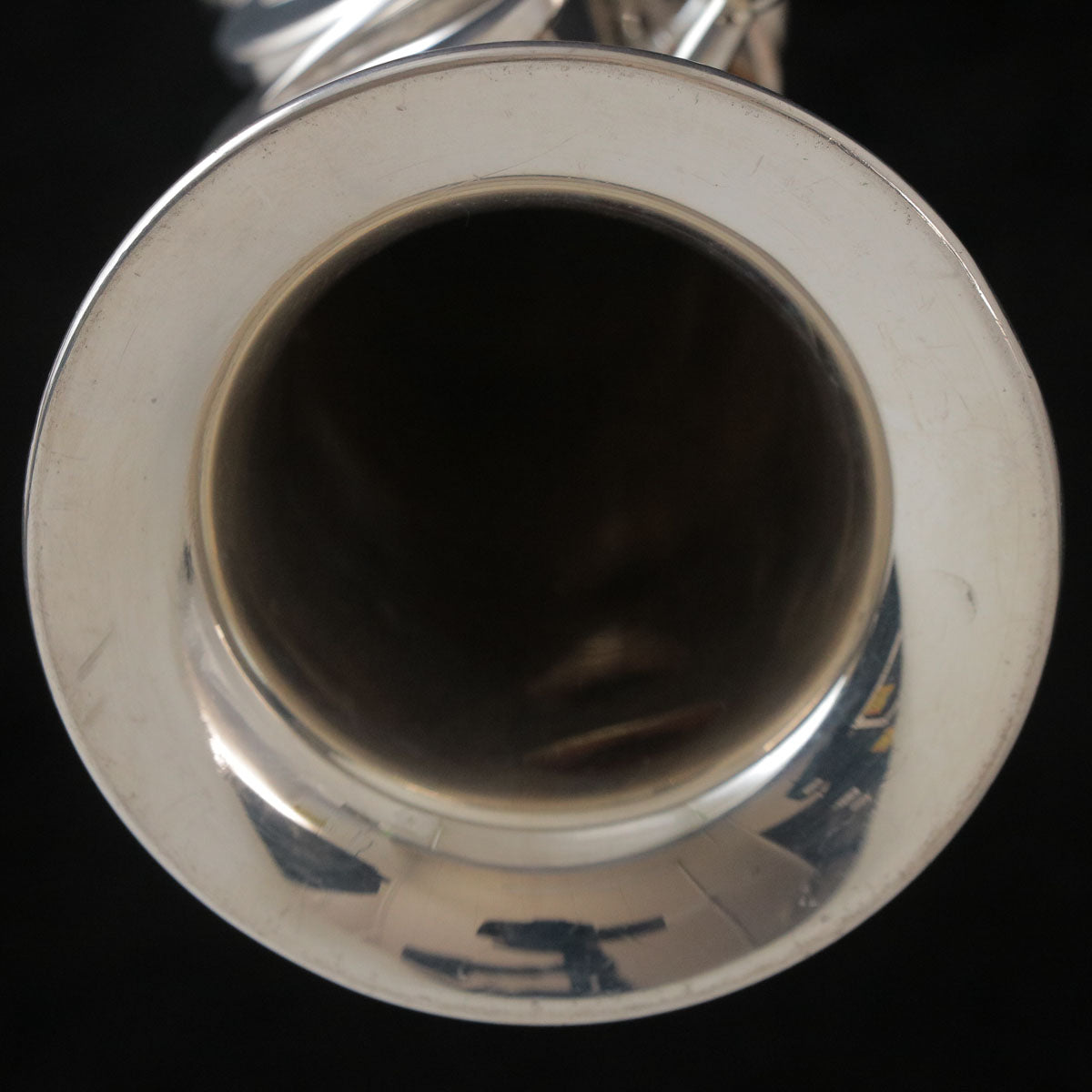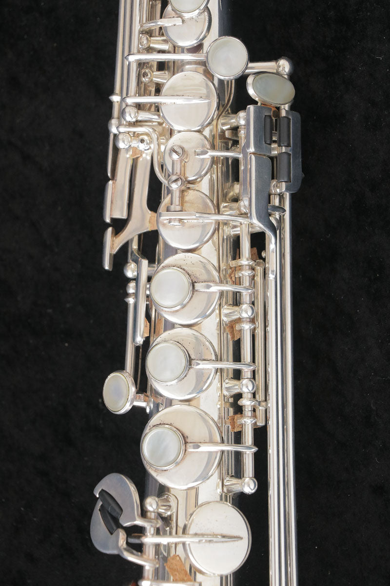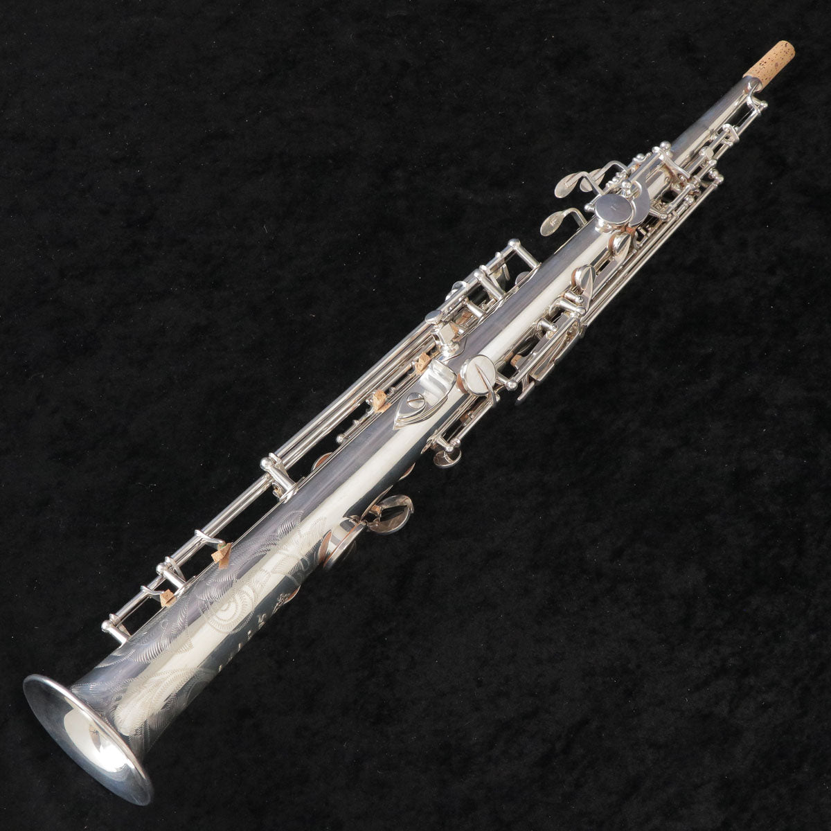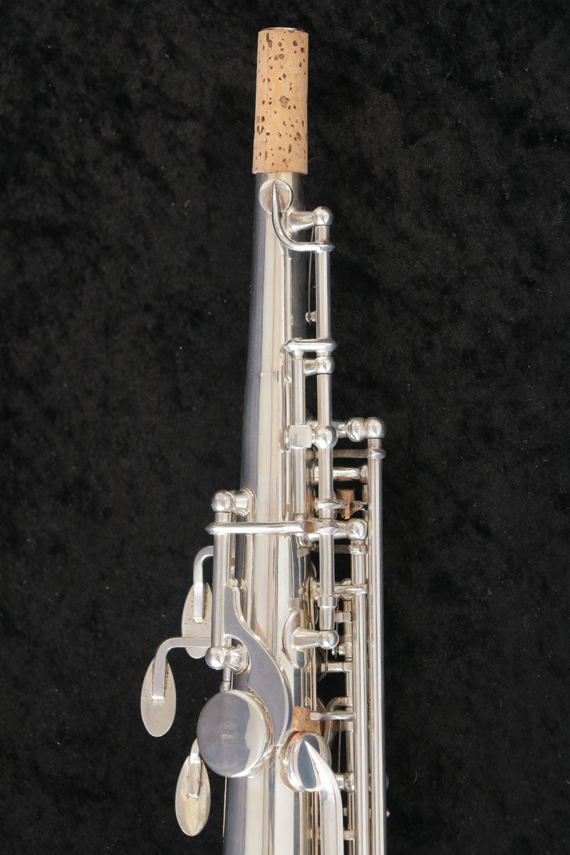 This is a silver-plated Mark 6 soprano saxophone manufactured around 1980.
