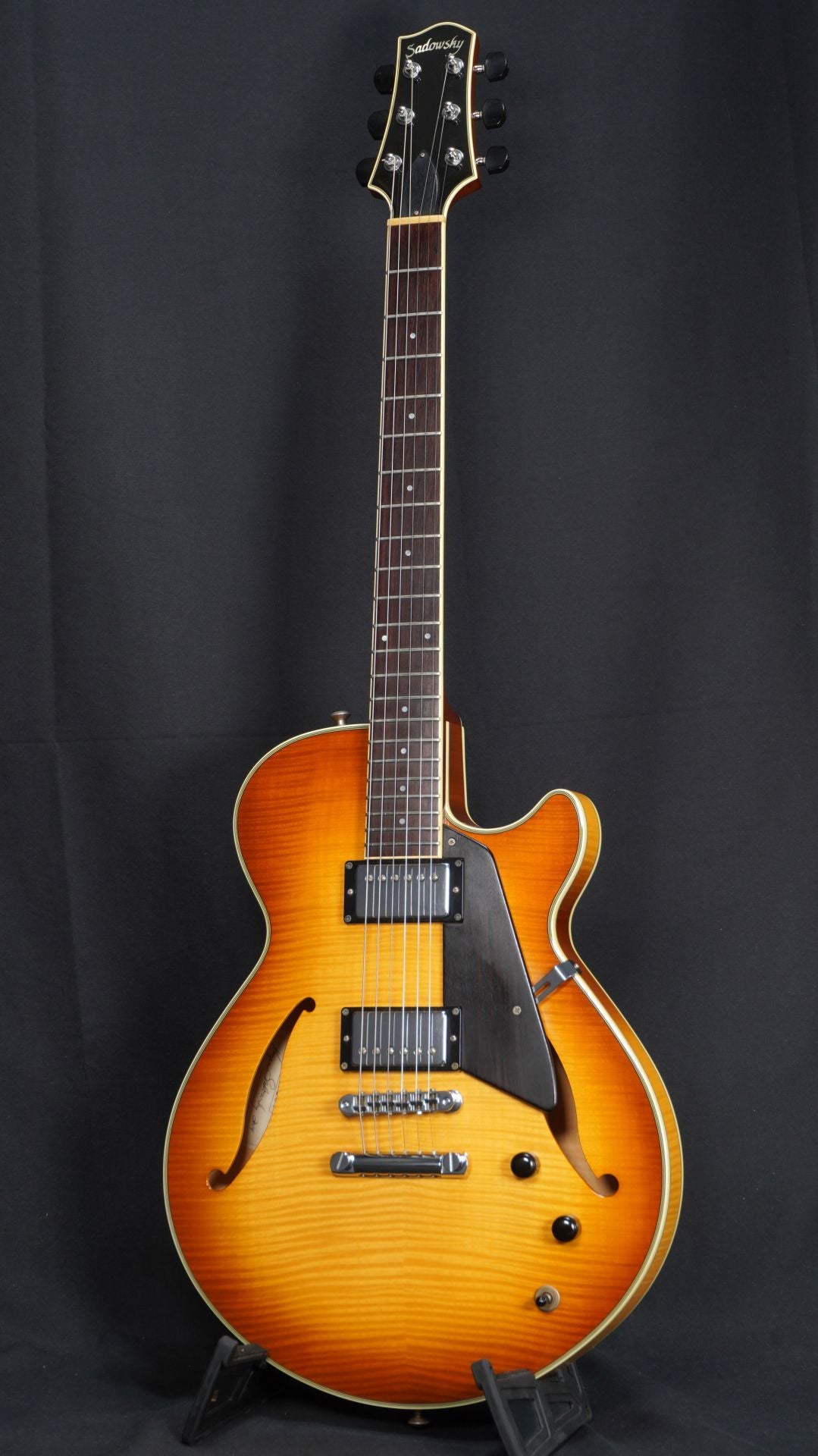 The pickups are Sadowsky's original vintage PAF style humbuckers, making it suitable for any genre of music.