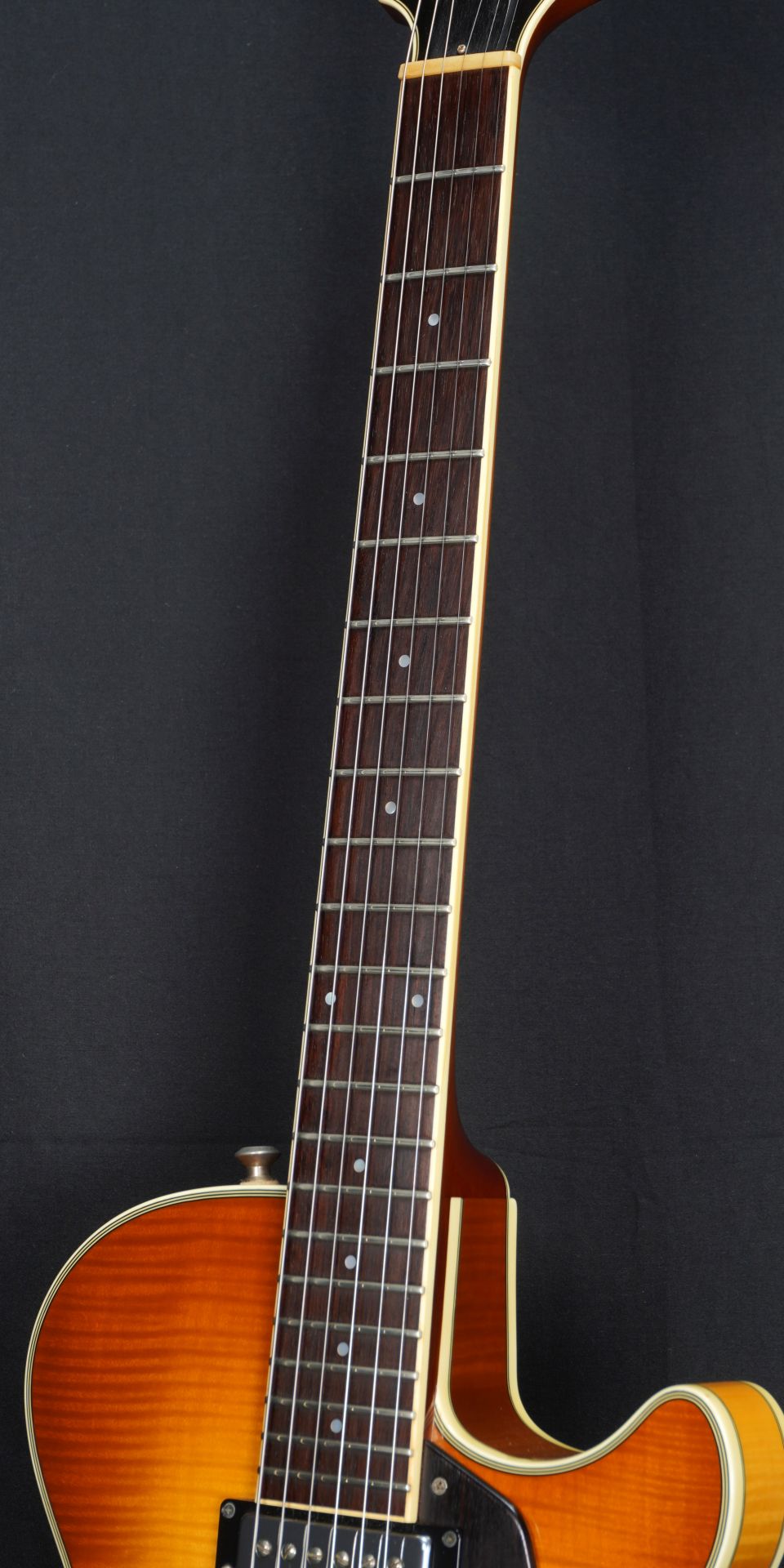 ・Mahogany neck with Ebony fingerboard and Cat’s Eye Pearloid Inlays