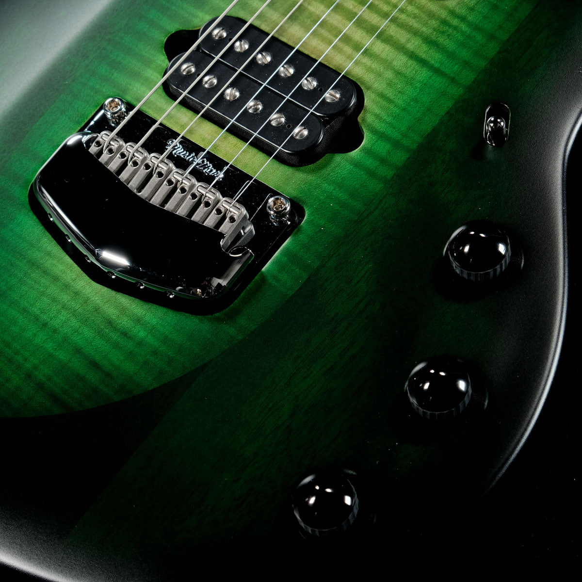 Custom John Petrucci Music ManR floating tremolo of plated, hardened steel with Fishman Powerbridge piezo saddles