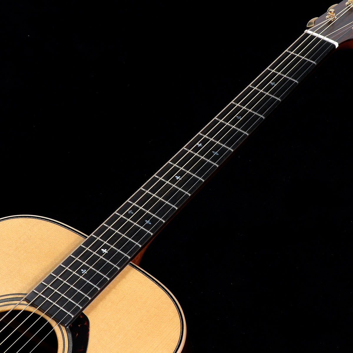 スモールBODY・オールソリッド仕様で、TOPにイングルマン・スプルースを、SIDE/BACKにはローズウッドを採用。