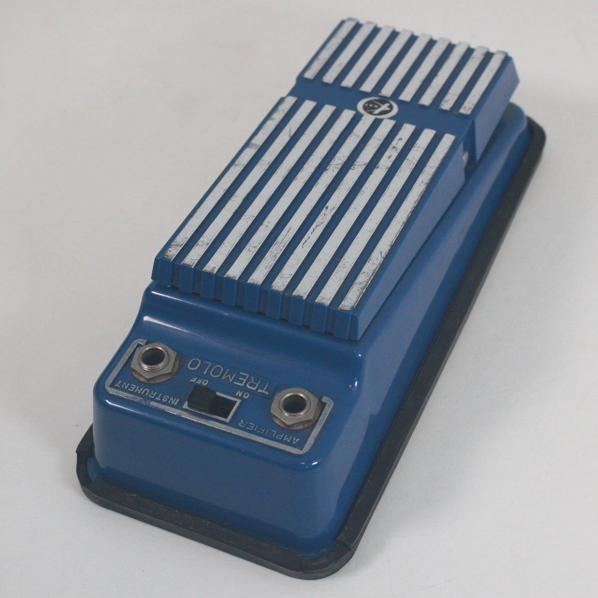It is a simple model with a slide switch on the tip to switch effects on and off, and tremolo speed controlled by stepping on the pedal.