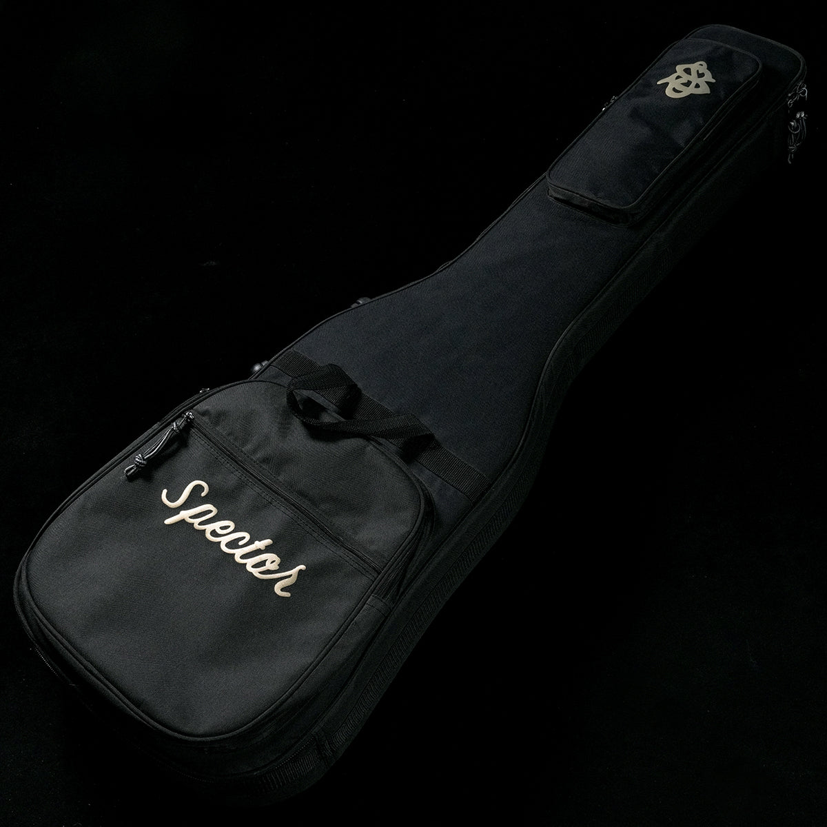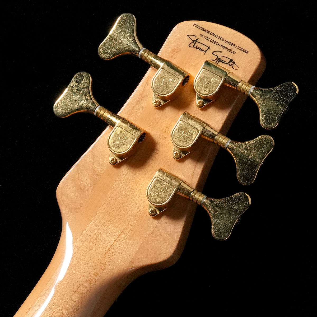 The pickups are EMG 40TW with single/ham switchable, and the active is a Spector TonePump for a traditional yet versatile active sound. The body is made of European alder back and poplar burl with intense grain, and the fingerboard is made of rosewood with Spector's traditional crown inlay.