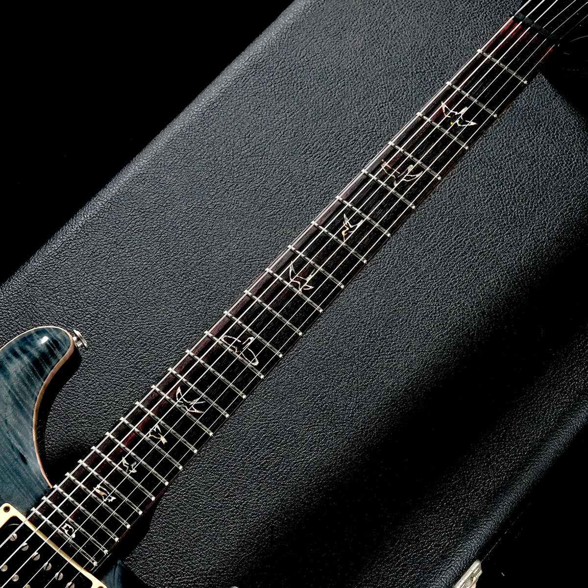 ネックシェイプはワイド・シンとなっており、指板上には美しく羽ばたくバードインレイが埋め込まれています。