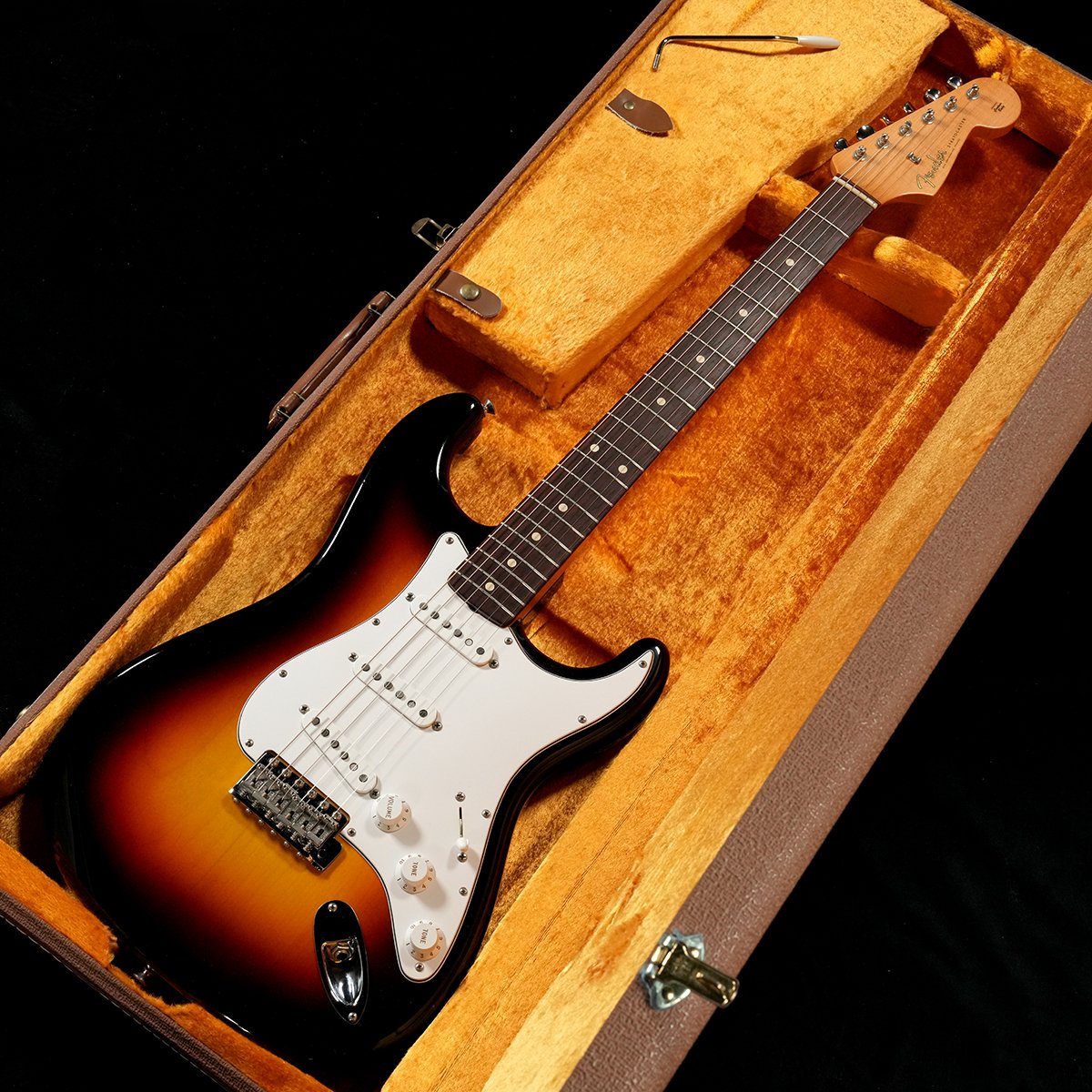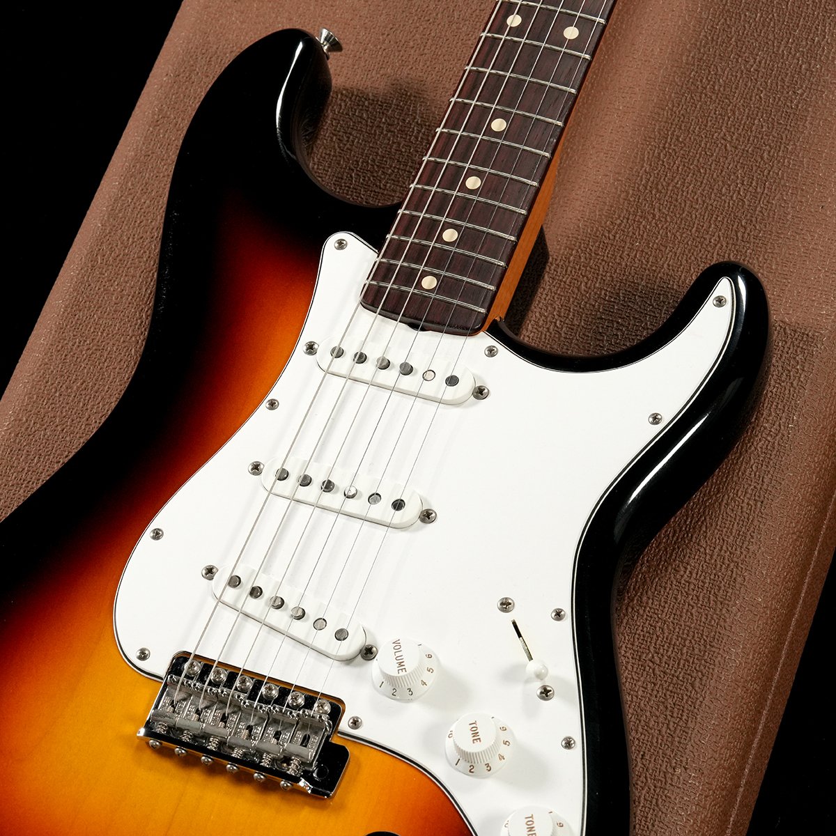 オフセット2ピースのアルダーボディーにメイプルネック、スラブボード仕様のローズウッド、3色で塗装されたサンバーストカラーなど、1960年製ストラトキャスターを空実に再現した1本。