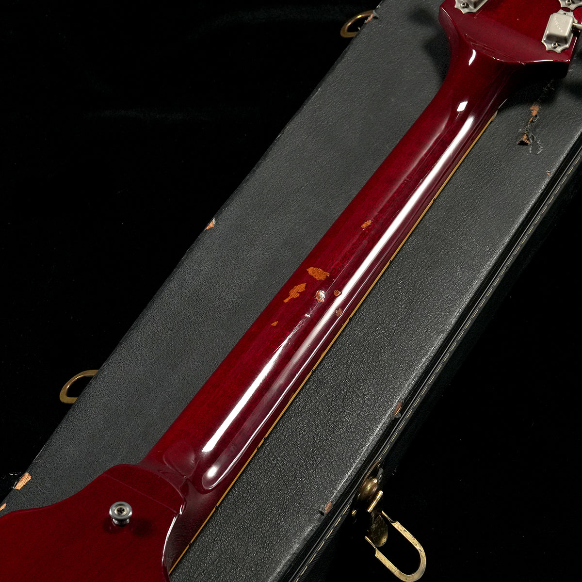 象徴的な形状の3ピースマホガニー・ボディに3ピースマホガニーネックの組み合わせ。この頃特有の丸ヘッドが何ともカッコいい雰囲気を醸し出しています。ピックアップは刻印ナンバードPAF、フロントには薄っすら81年のデイトが見えます。* リアは消えております。