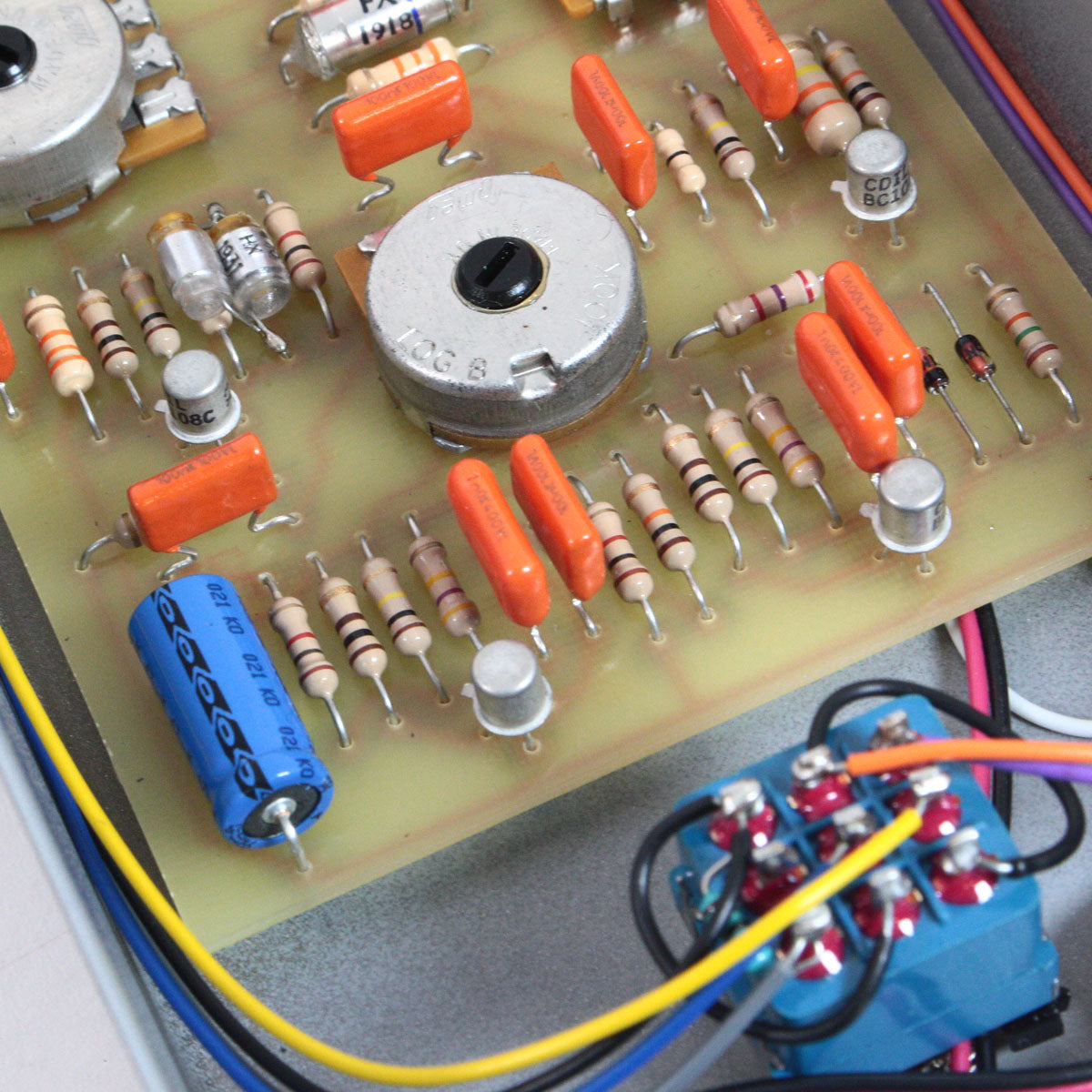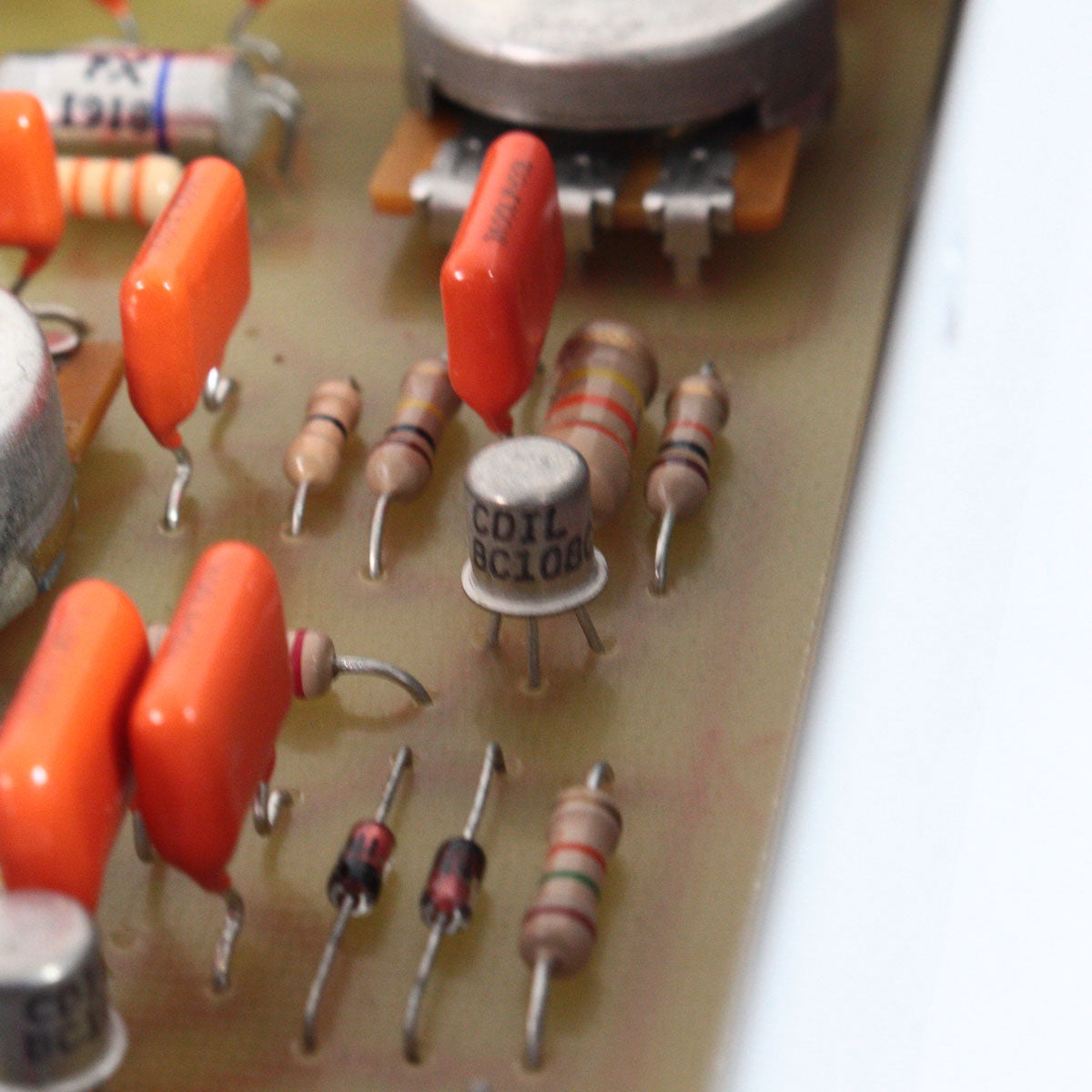 「バットマンスタイル」のケースに収められ、シリコントランジスタBC108Cを4石搭載しています。