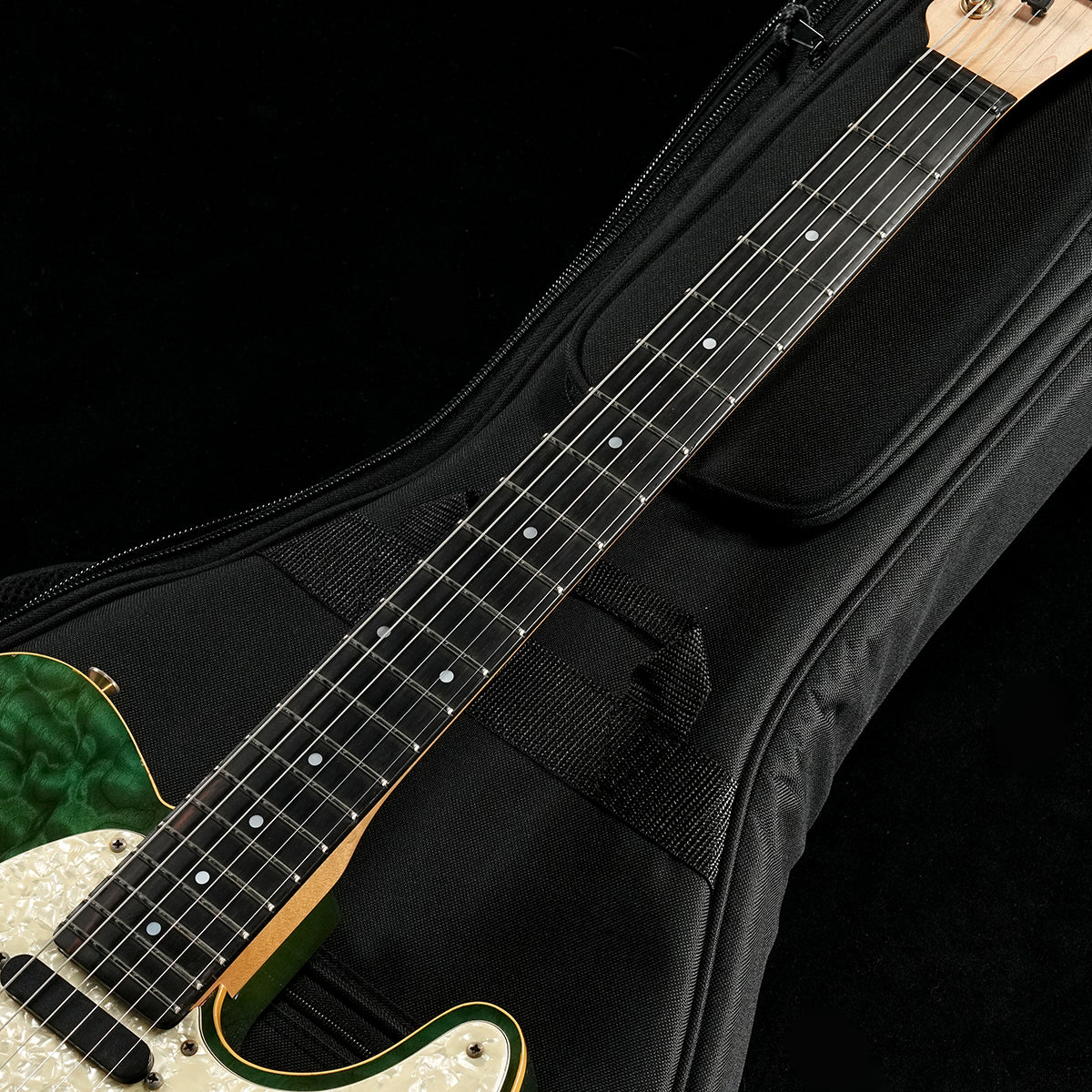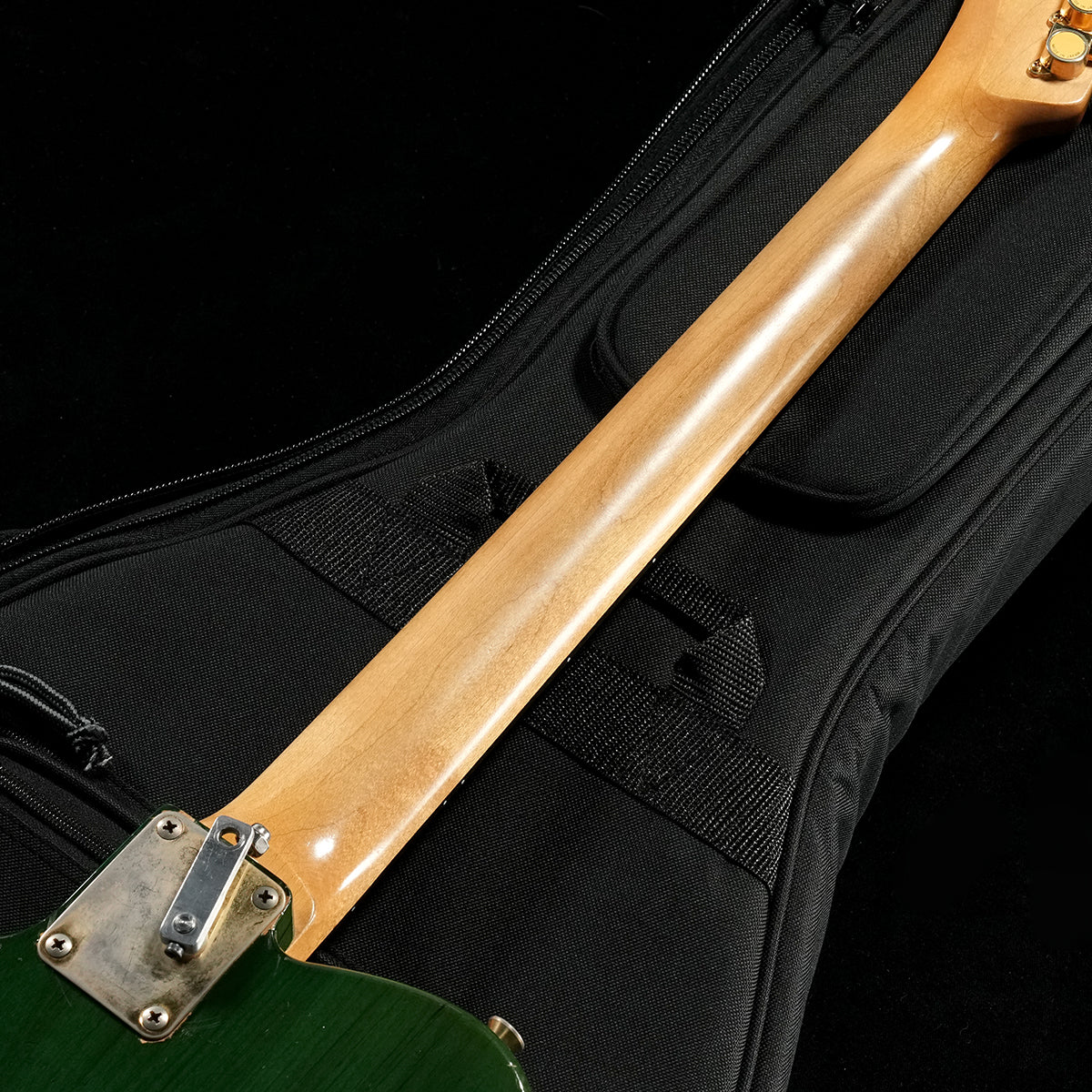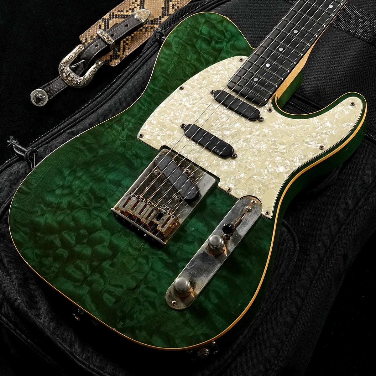 スペックに於きましてはキルテッドメイプルトップにアッシュバックのボディにエボニー指板のネックが組み込まれていて、ピックアップはEMG TLセットにセンターはEMG SAを搭載。