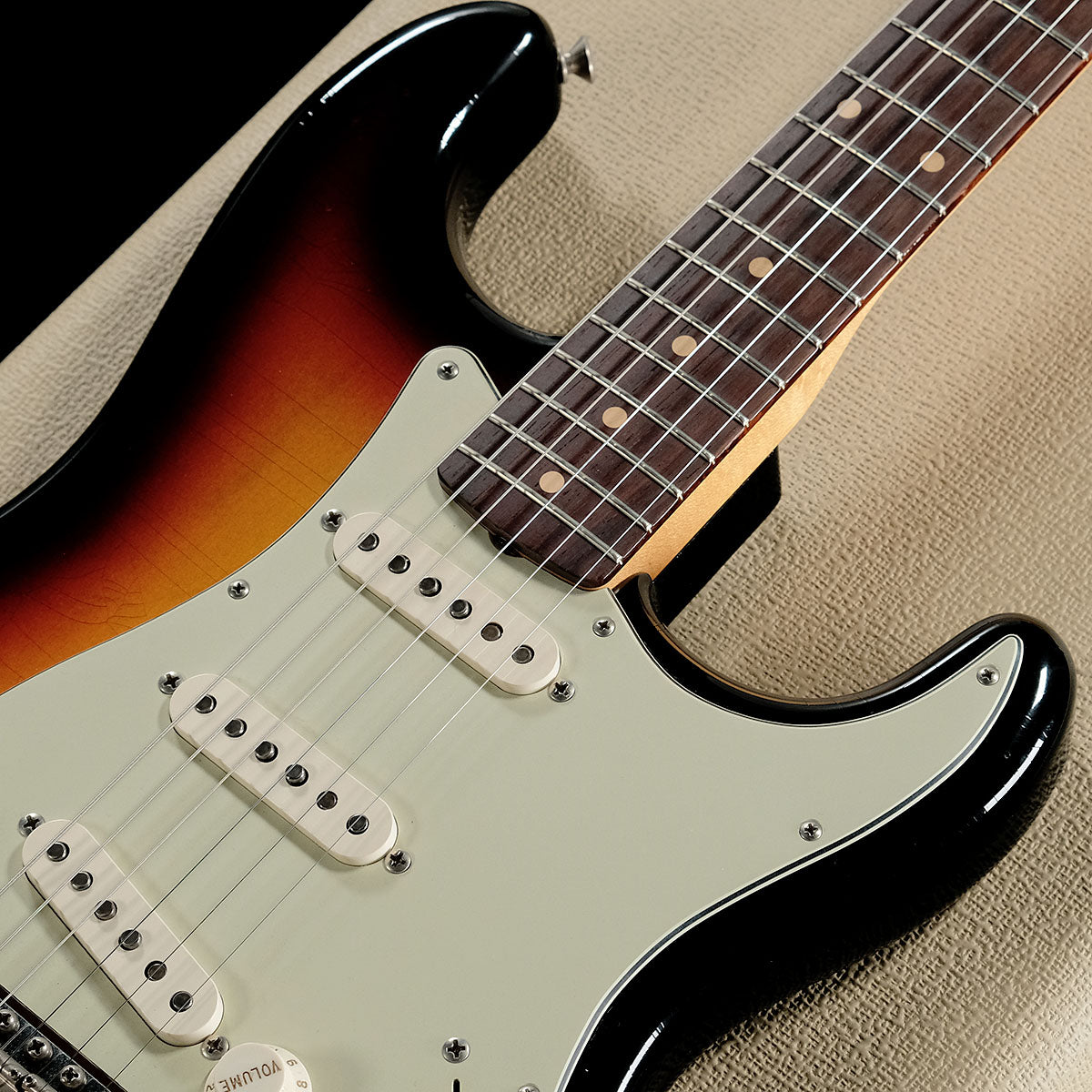 ストラトキャスターの中でも特に人気のある1961年製スタイルのこちらは、アルダーボディーにメイプルネック、スラブ・ローズウッド指板というThe Strat!!という1本。