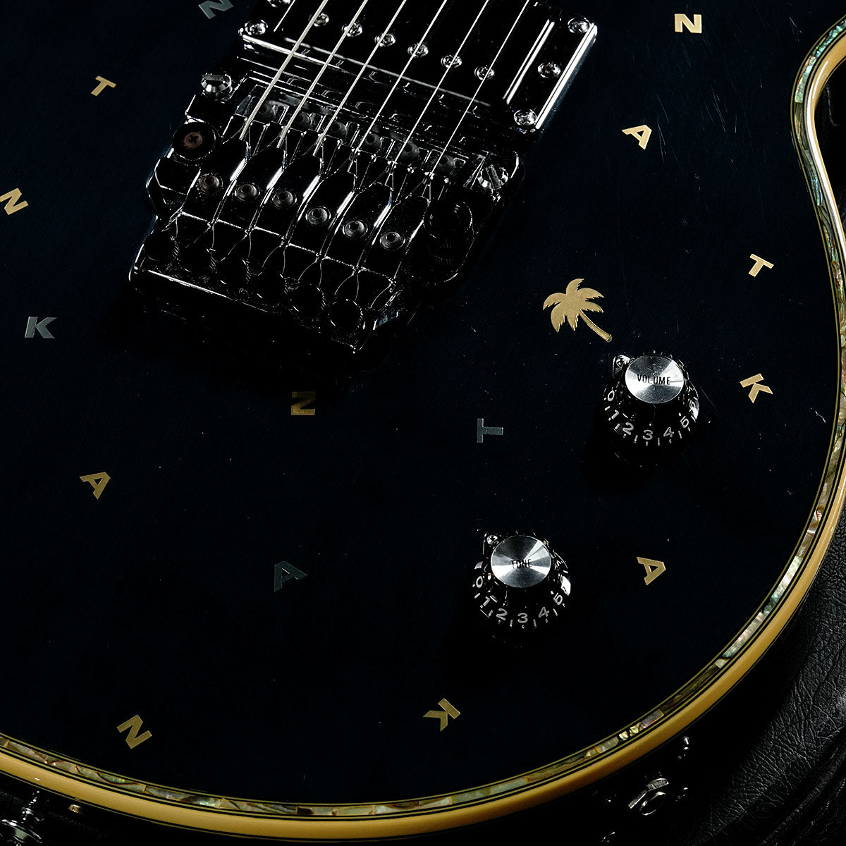 美しいシースルー・ネイビーカラーでフィニッシュされたボディーにはヤシの木のマークとT,A,K,Nのスペルが散りばめられています。