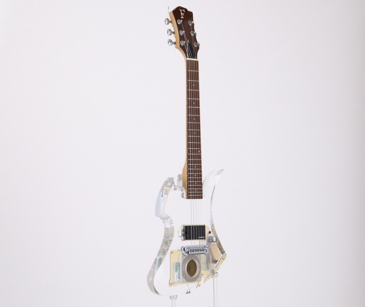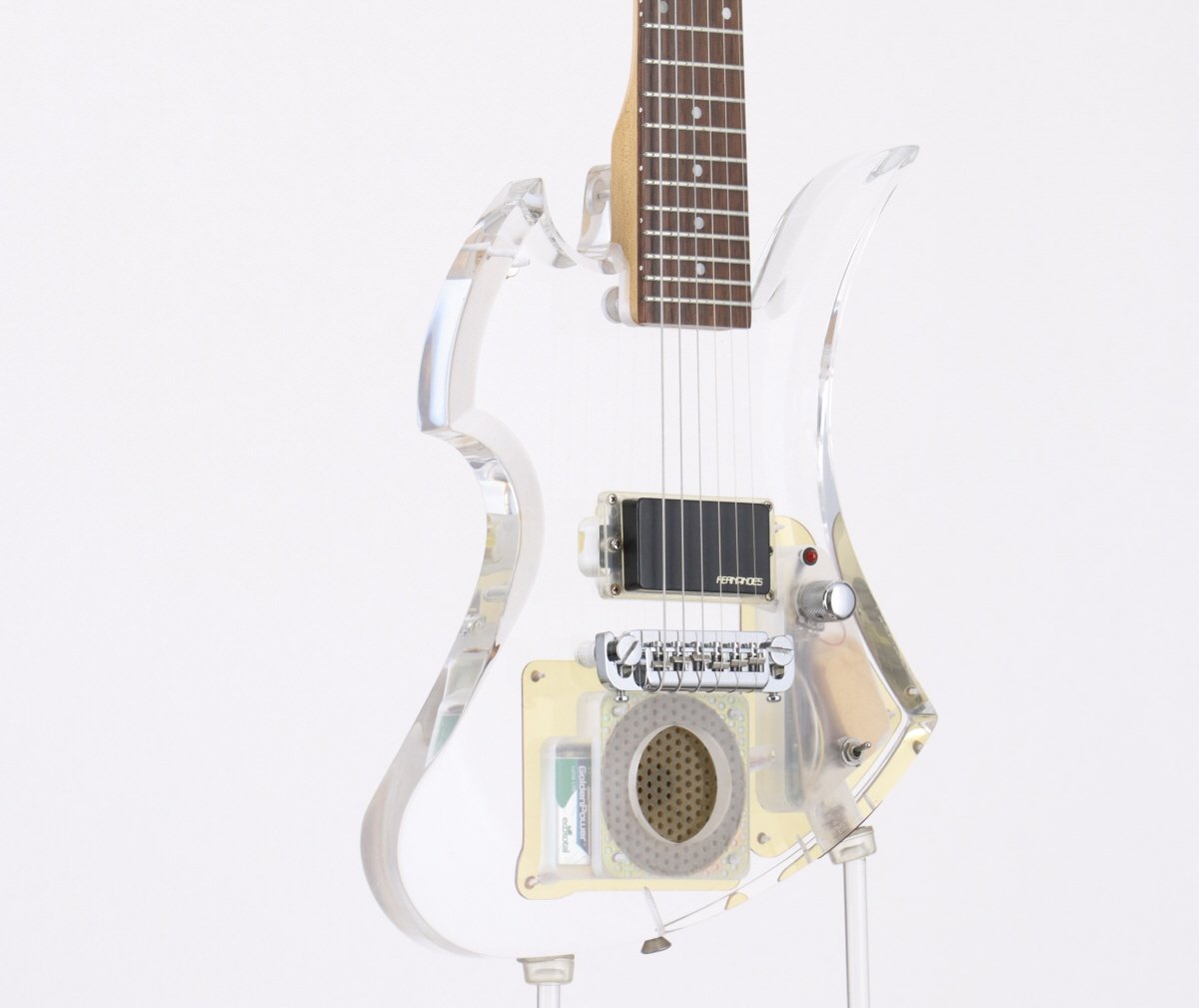 MGシェイプのHIDEモデルをサイズダウンしたスピーカー内蔵モデル。アクリル・ボディに1ハムバッカー、1Vol/スピーカーON-OFFスイッチ仕様になっています。