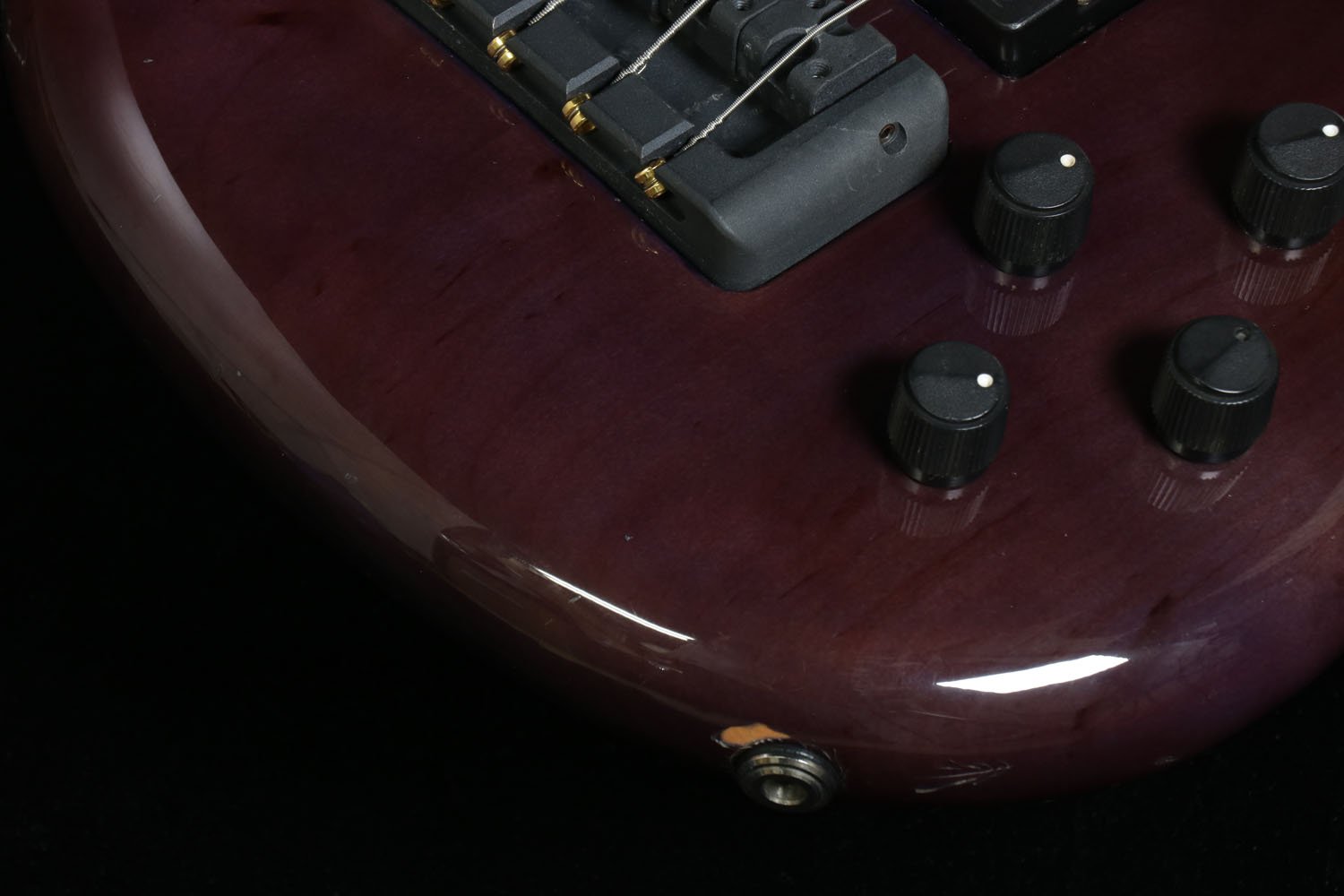 使用感(小キズやひっかきキズ、スレや弾きスジ、ピッキング痕、バックル痕、ノブのポインターx1欠品、金属パーツやネジ類の曇り・ビッツ、等々の外観ダメージ)が見られます。