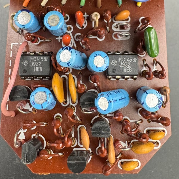 オペアンプはテキサスインストゥルメンツ社のMC1458Pが搭載されております。