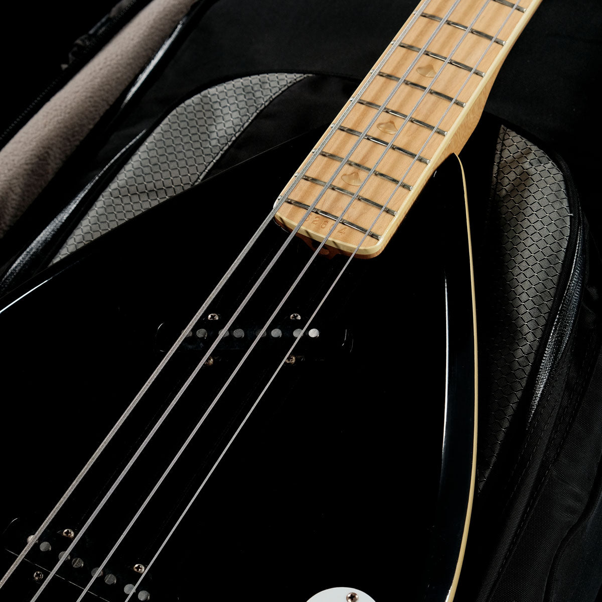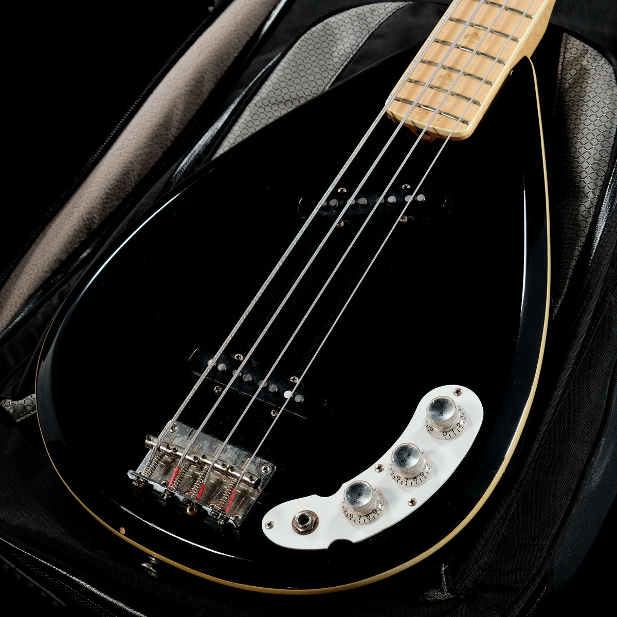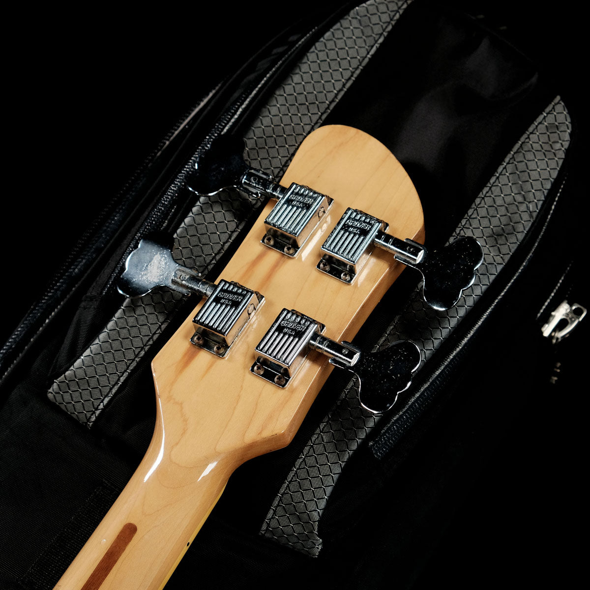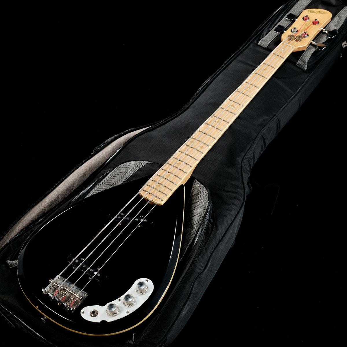 ボディとネックはメイプル、ピックアップジャズベースタイプ、ボディシェイプはティアドロップと、リッケンバッカーとジャズベースとVOXをミックスしたような、「ご本人がリクエストした?と思われる」唯一無二のいいとこ取りの1本です。