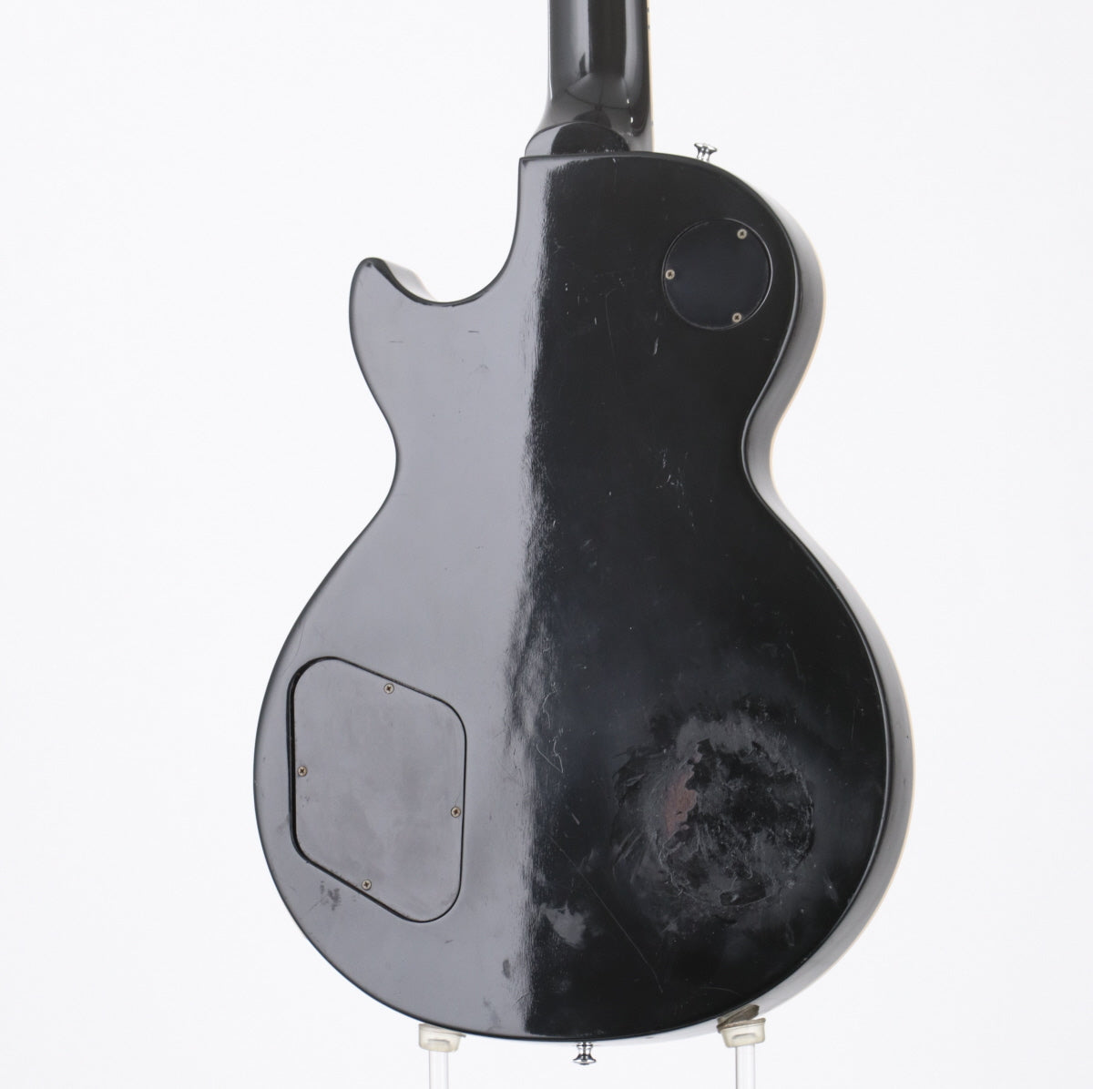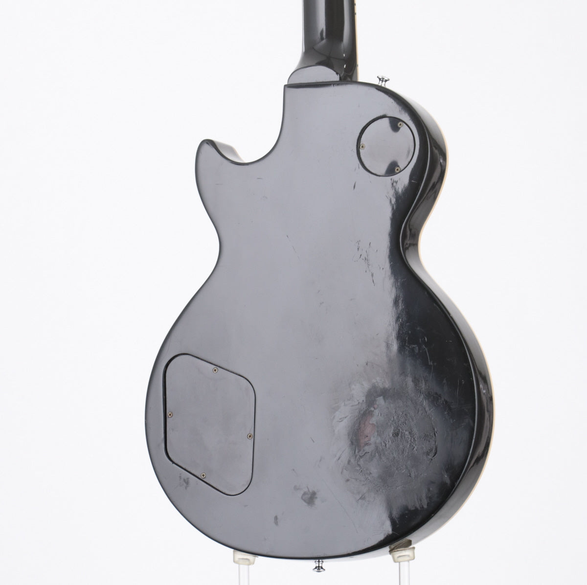 ネック裏9フレット付近にて塗装剥がれが有り、ボディ全体的にキズや打痕が多く、ボディ裏にてシール跡と塗装の剥がれや凸凹が目立ちます。