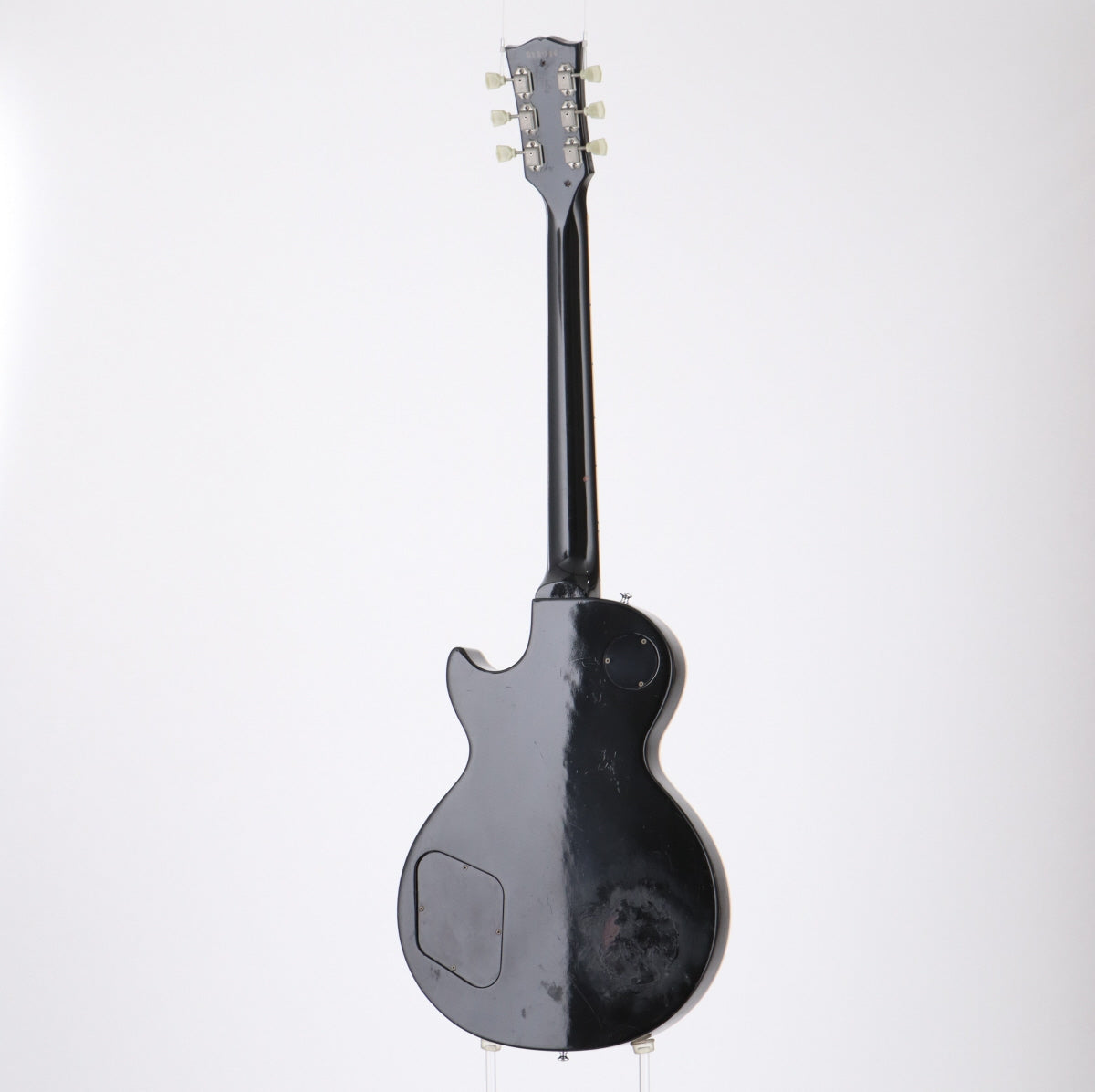ボディエンドにてスタンド焼けのような塗装のダメージが有り、コントロールツマミにてヒビが生じ、金属パーツにてサビやくすみやピッツが目立ちます。