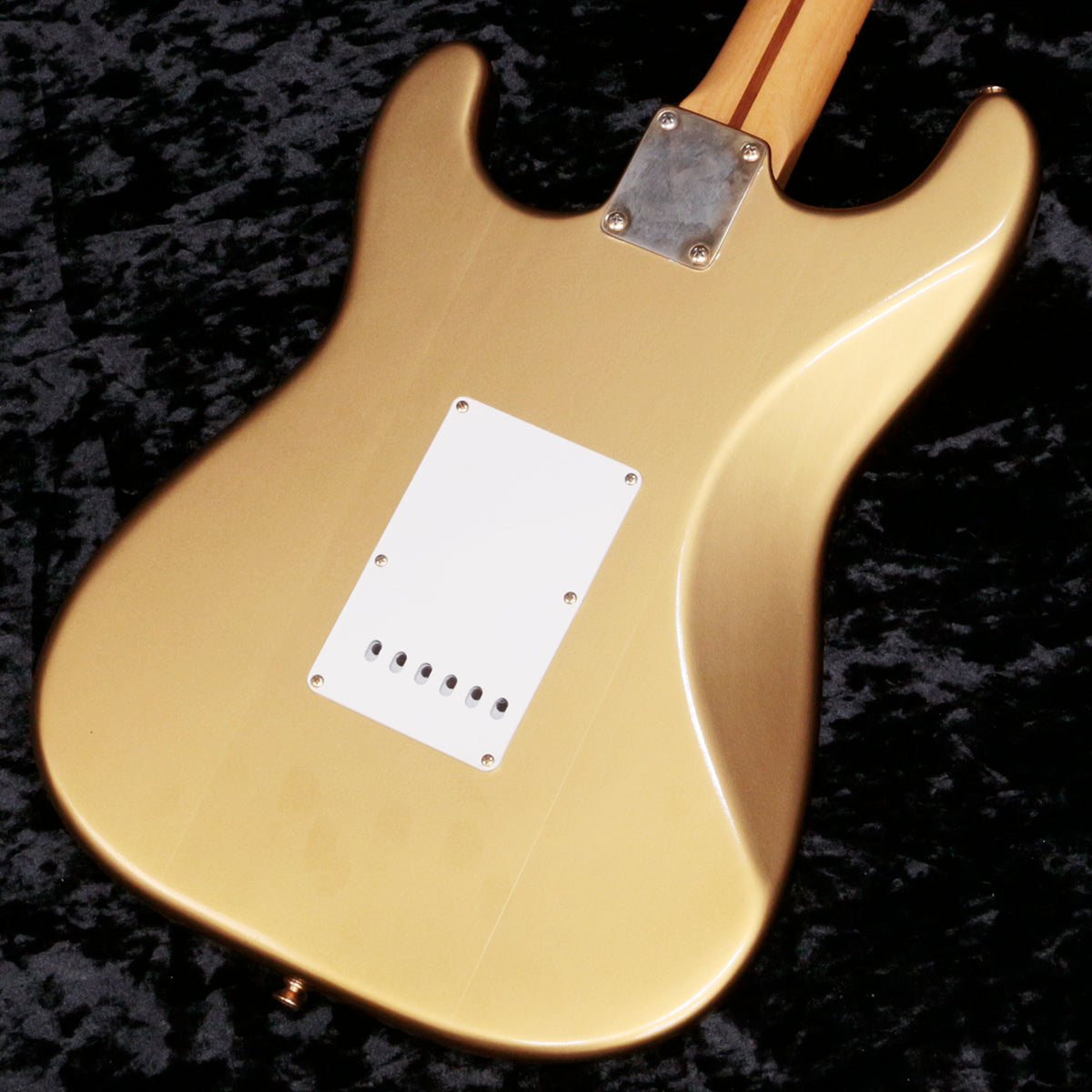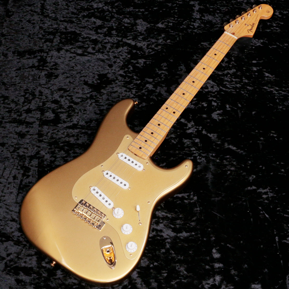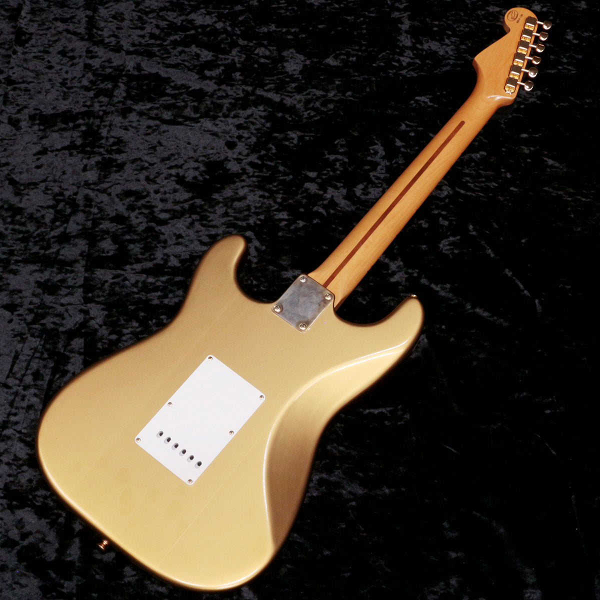 アルダーボディ/メイプルネックの57ストラトキャスタースペックにアノダイズドピックガード採用、そのほかパーツもゴールドで統一された目を惹くルックスです。