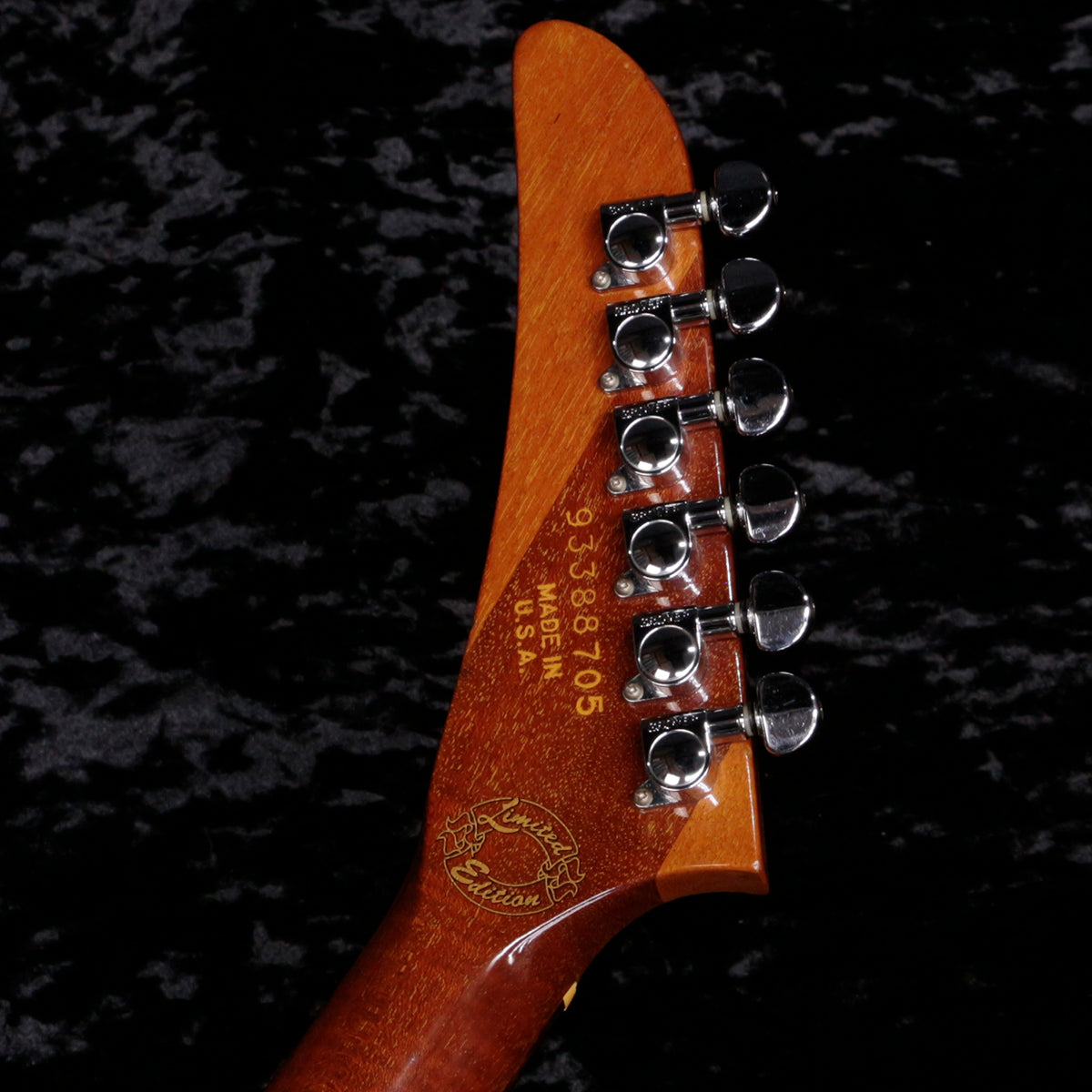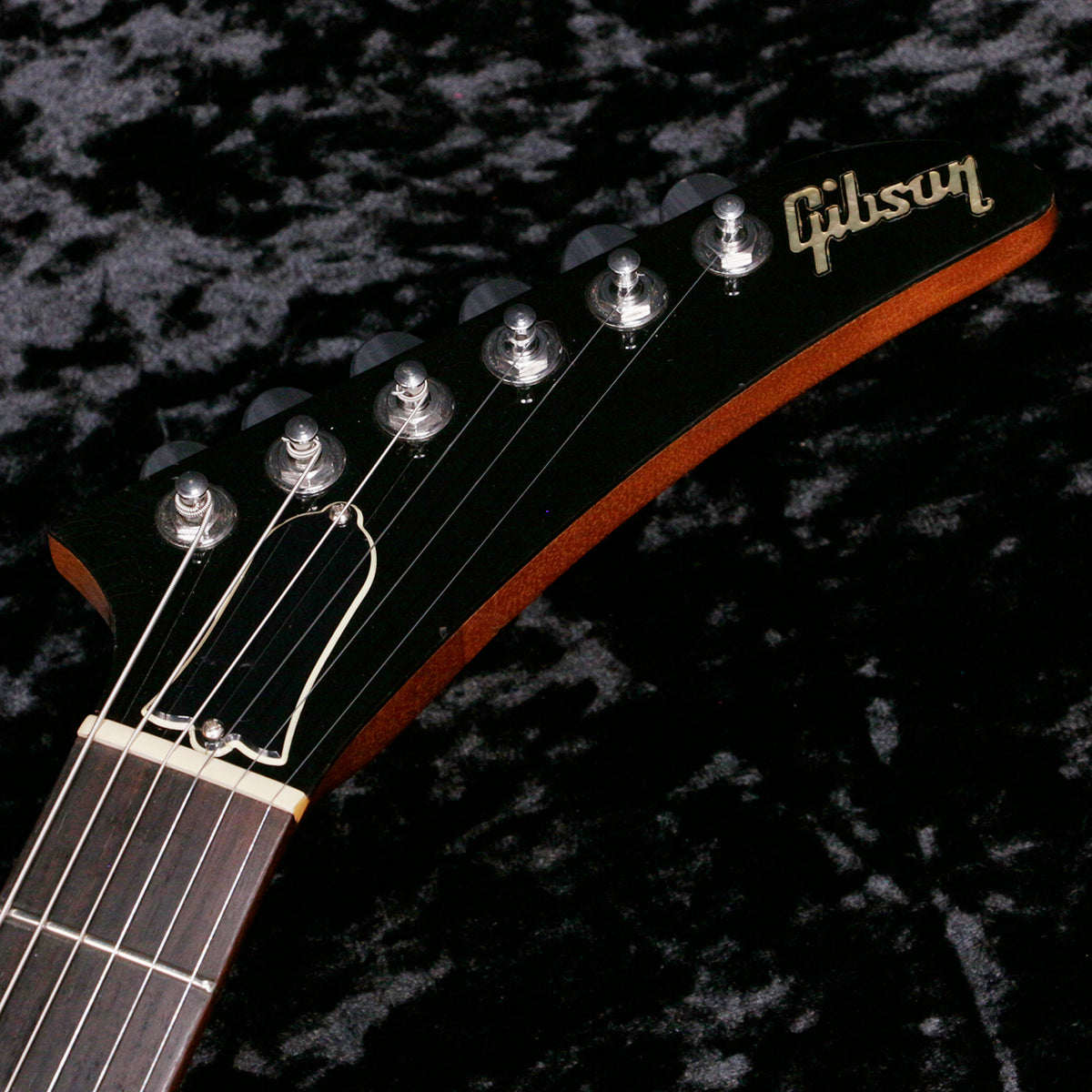 ギブソンでは珍しい6連ペグのヘッドストック、左右非対称で過激なボディシェイプながら、ハイフレットでの高い演奏性、突き出た6弦側ボディウイングにより安定したピッキングフォームを保つことが出来ることから、80年代に入りメタル系のギタリストに広く愛用されております。