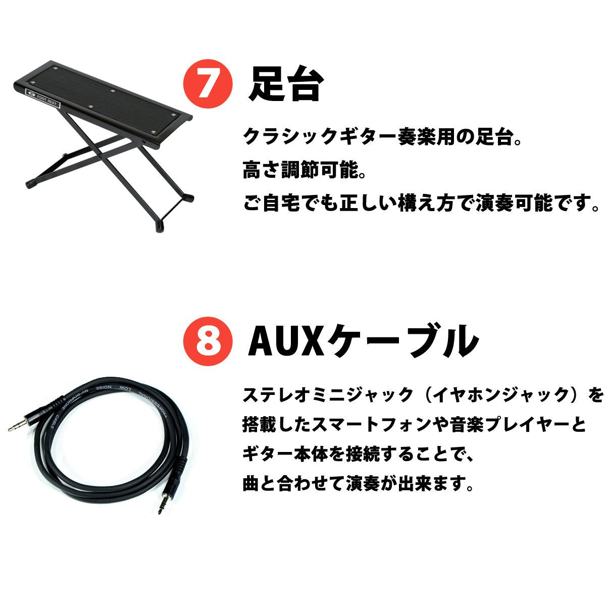 ・AUXケーブル ・・・ステレオミニ(イヤホンジャック)搭載のスマホや音楽プレイヤーとギターを接続し、曲を聴きながら演奏が出来ます。