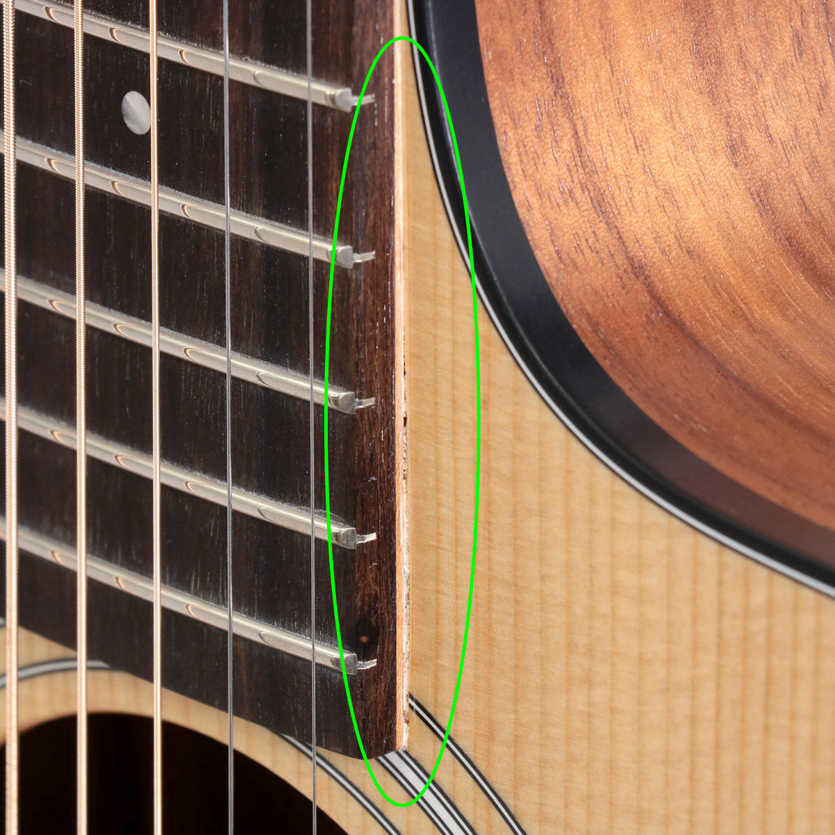 Neck外しての調整につき、Topの指板脇に調整跡が残っています。