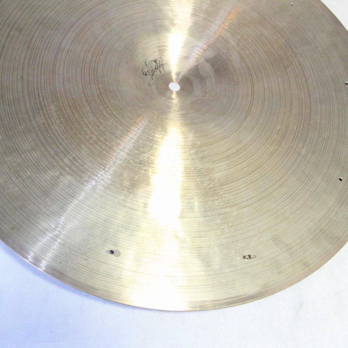 年式古いシンバルですが、あまり緑青や黒ずみが目立たず、そのため音色もきらびやかさが残っており、ウォームで豊かなサウンドですが、ややブライトなアタック感も味わえる個体です。