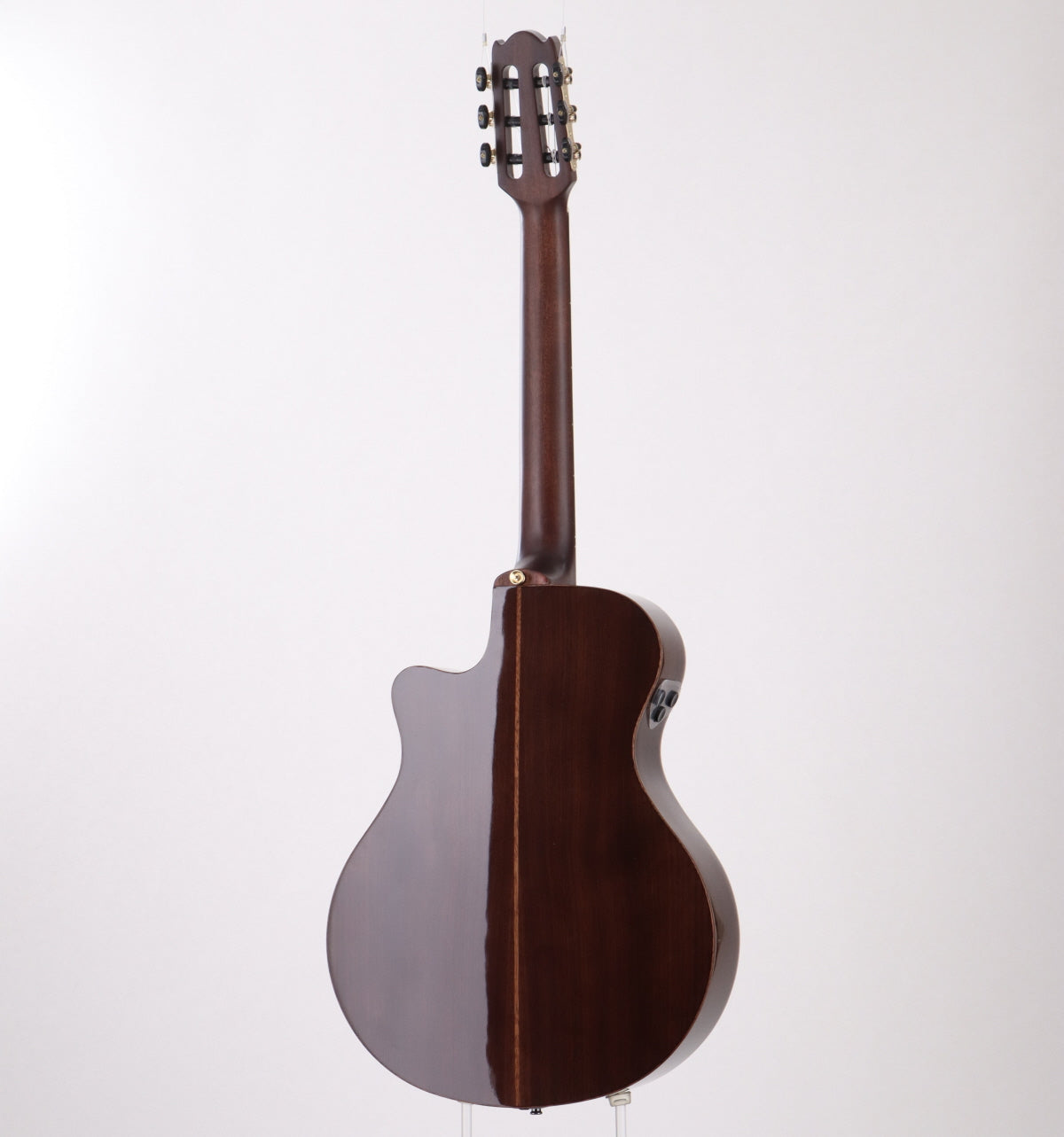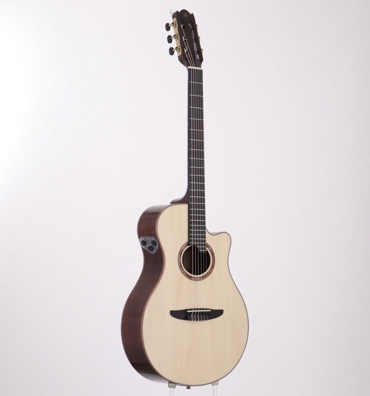 Nylon string NX series top model with slender 48mm nut and 1st string side cutaway. It has a European Sitka spruce solid top, solid walnut sides and back, ebony fingerboard and bridge, 24-fret specification to meet lead playing, and a System74N Atmosfeel (hybrid 3-way system) PU system.