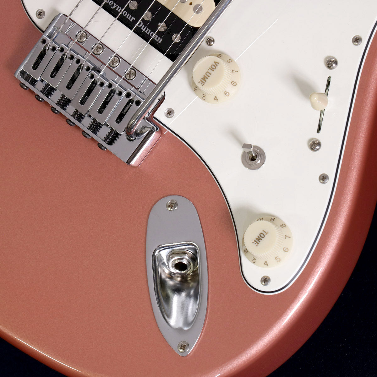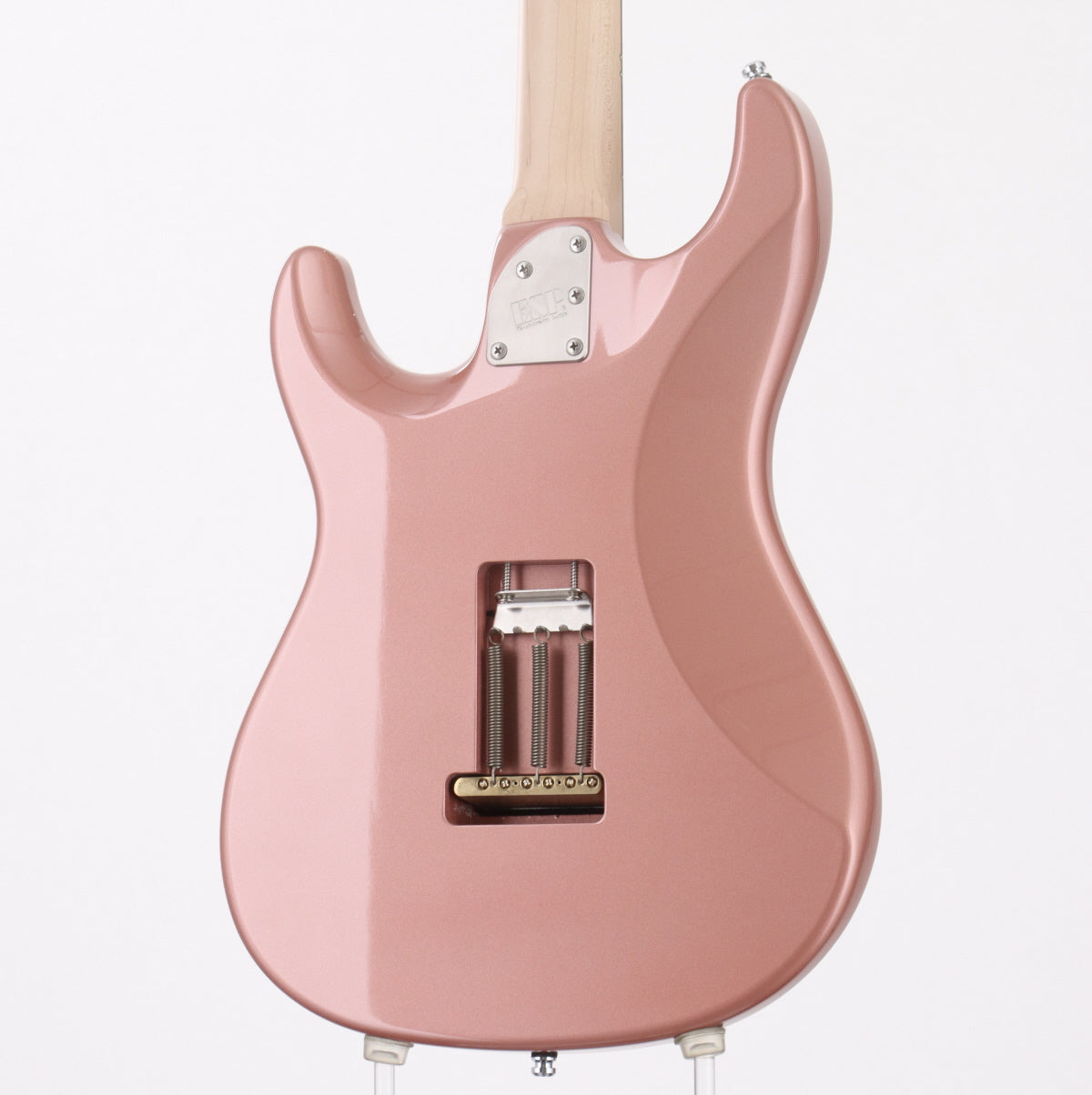 This is Mikio Fujioka's signature from the ESP brand, which includes ESP, Navigator, and Grassroots. Alder body, hard maple neck, rose fingerboard, Seymour Duncan SH-1n 59 Neck/SSL52-1n/SH-4 JB PU, Vol/Tone/5-way selector/front PU single & direct SW, GOTOH SG360-07 MG-T Rock pegs & ESP Flicker III bridge.